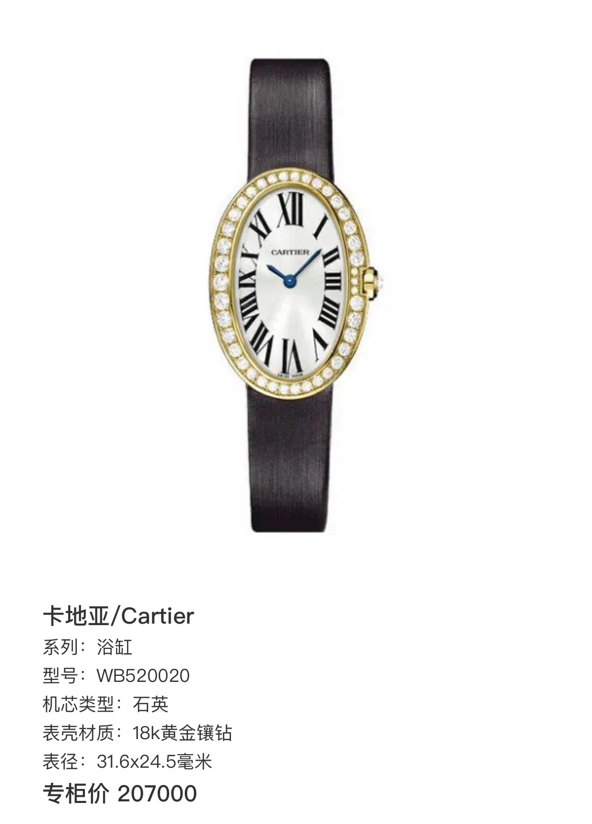 卡地亚/Cartier 浴缸 WB520020 石英 18k黄金镶钻 31.6x24.5毫米 专柜价207000