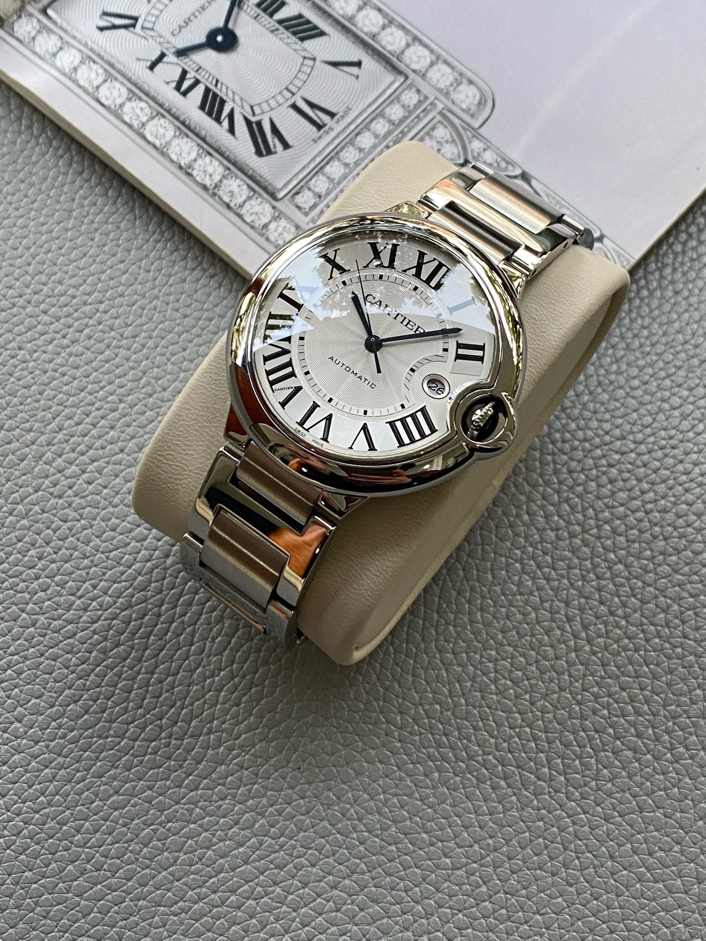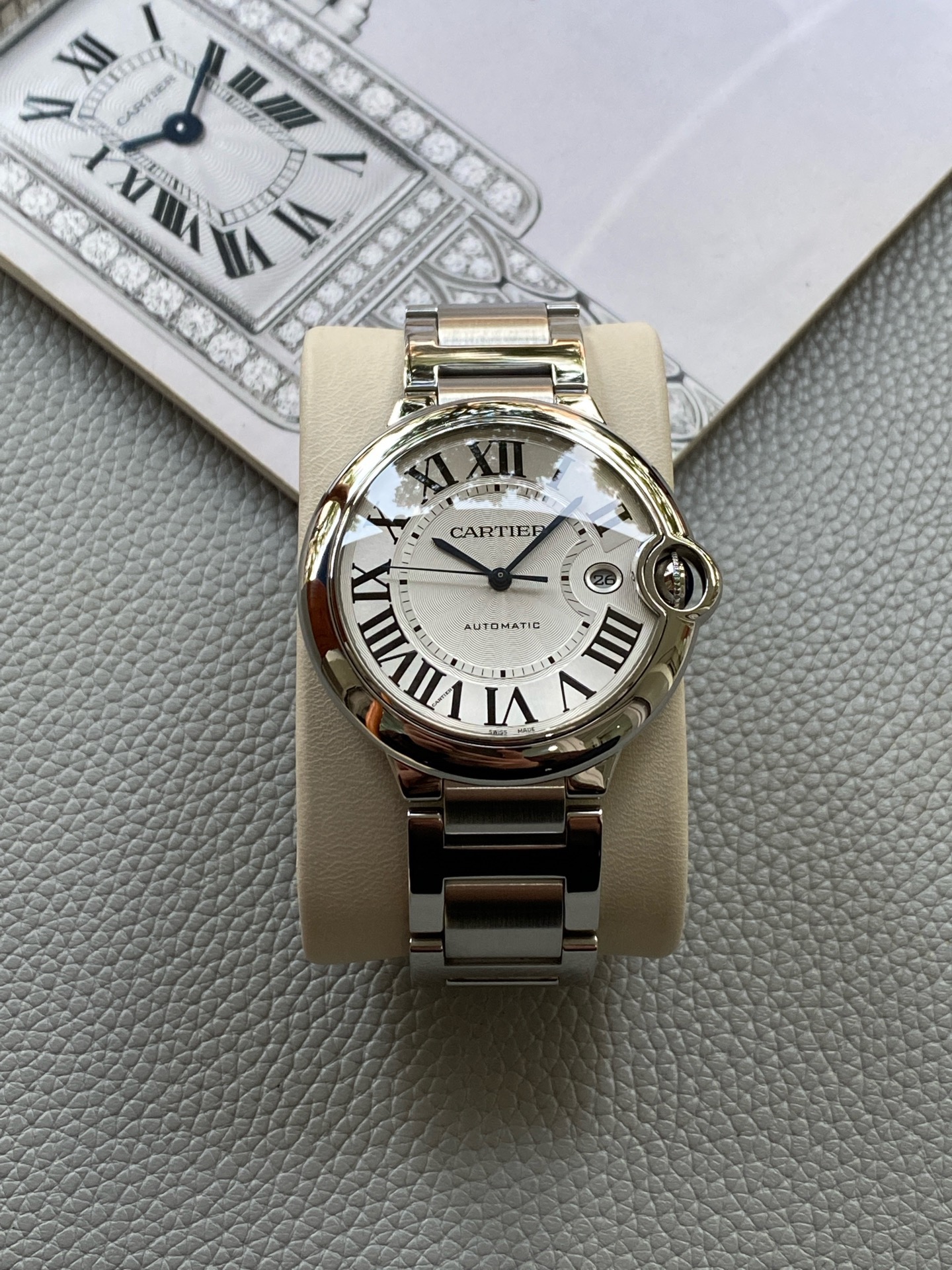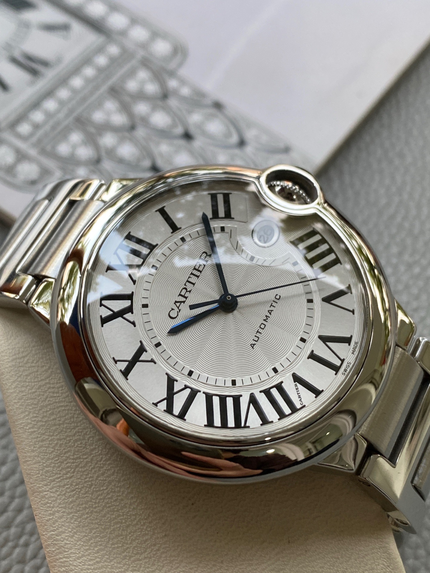 卡地亚蓝气球系列W69012Z4男士机械腕表,42mm表径,卡地亚大号蓝气球。日期显示、蓝钢指针