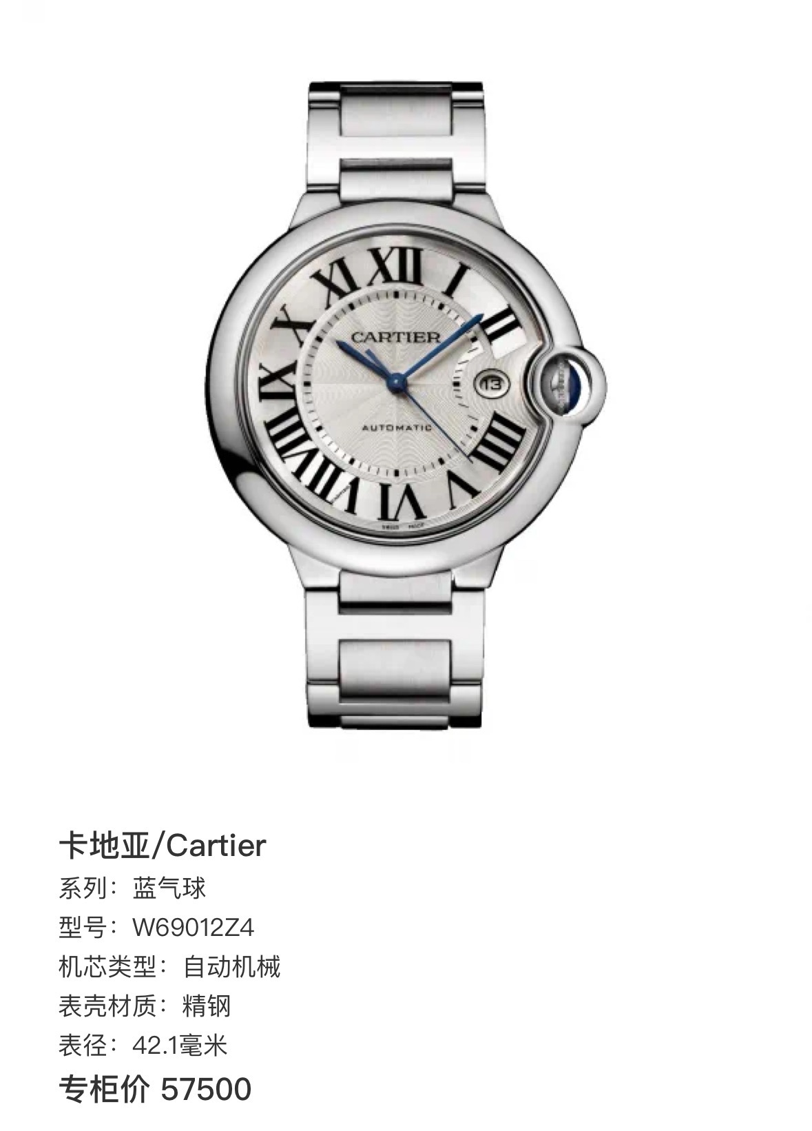 卡地亚蓝气球BALLON BLANCW69012Z4机械男性