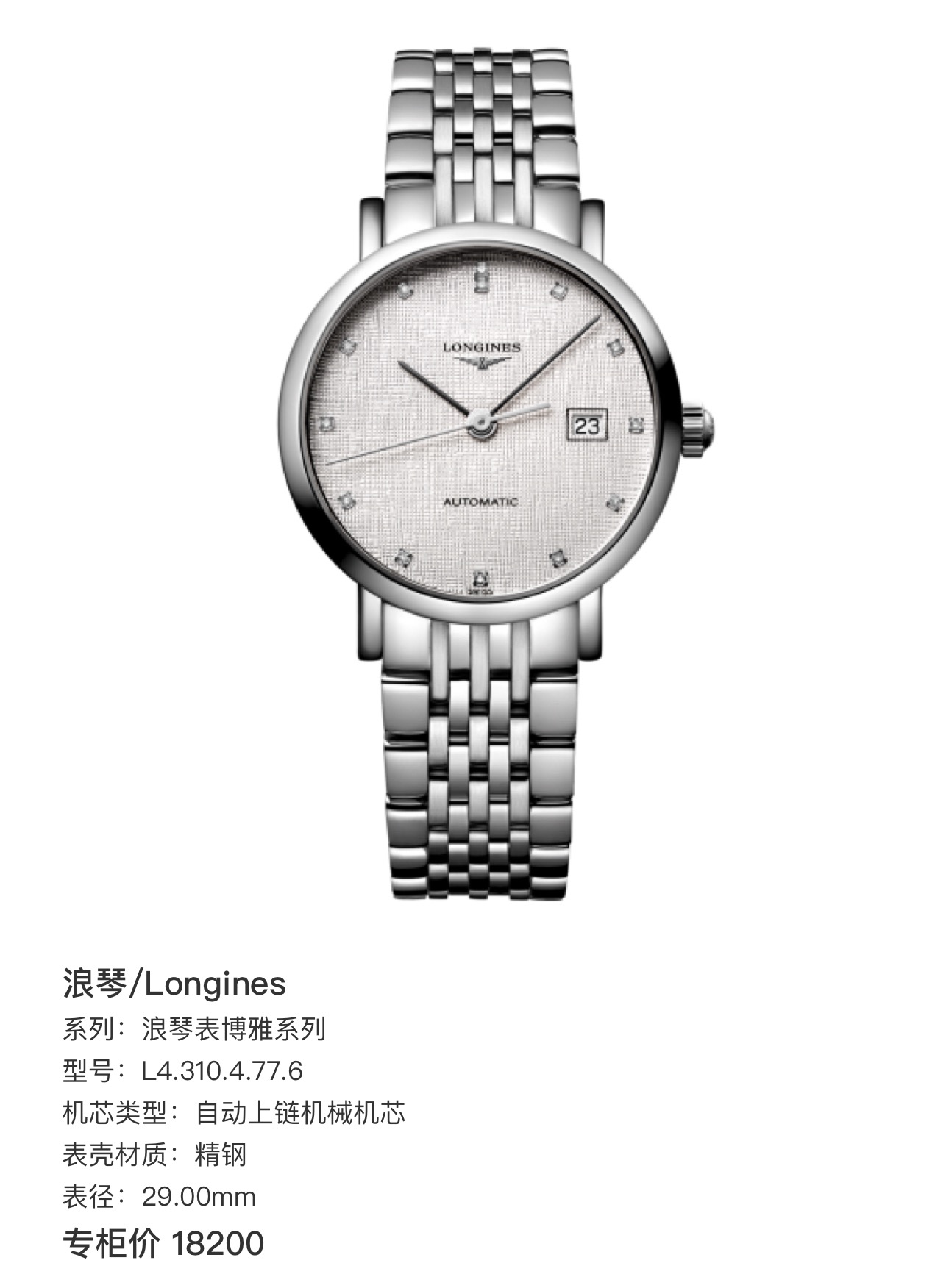 浪琴博雅L4.310.4.77.6机械女性