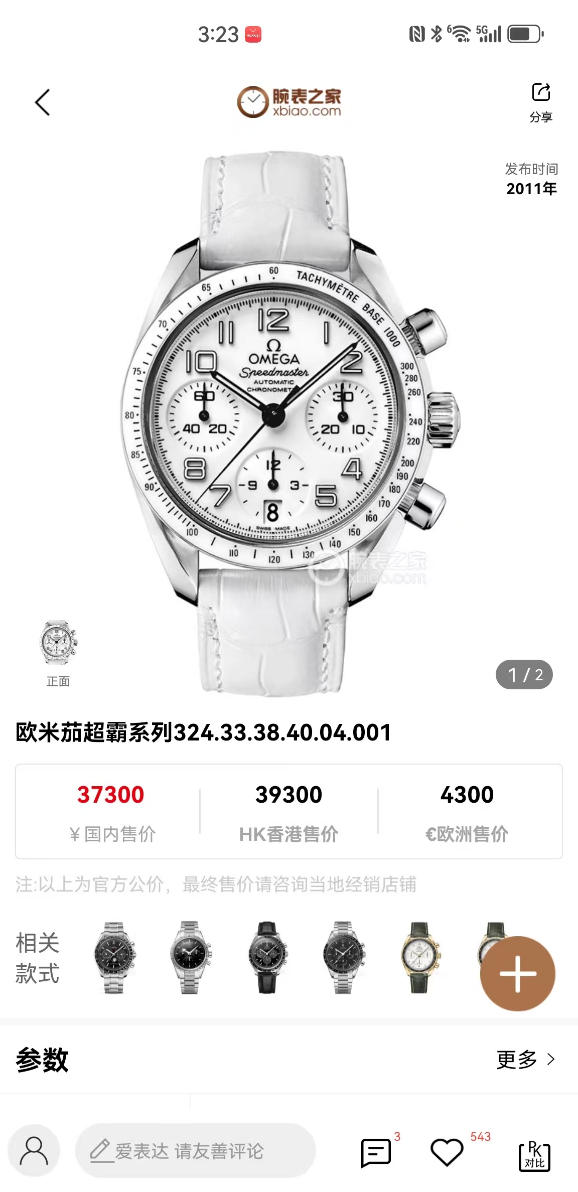 欧米茄超霸系列324.33.38.40.04.001 自动机械 38mm表径。