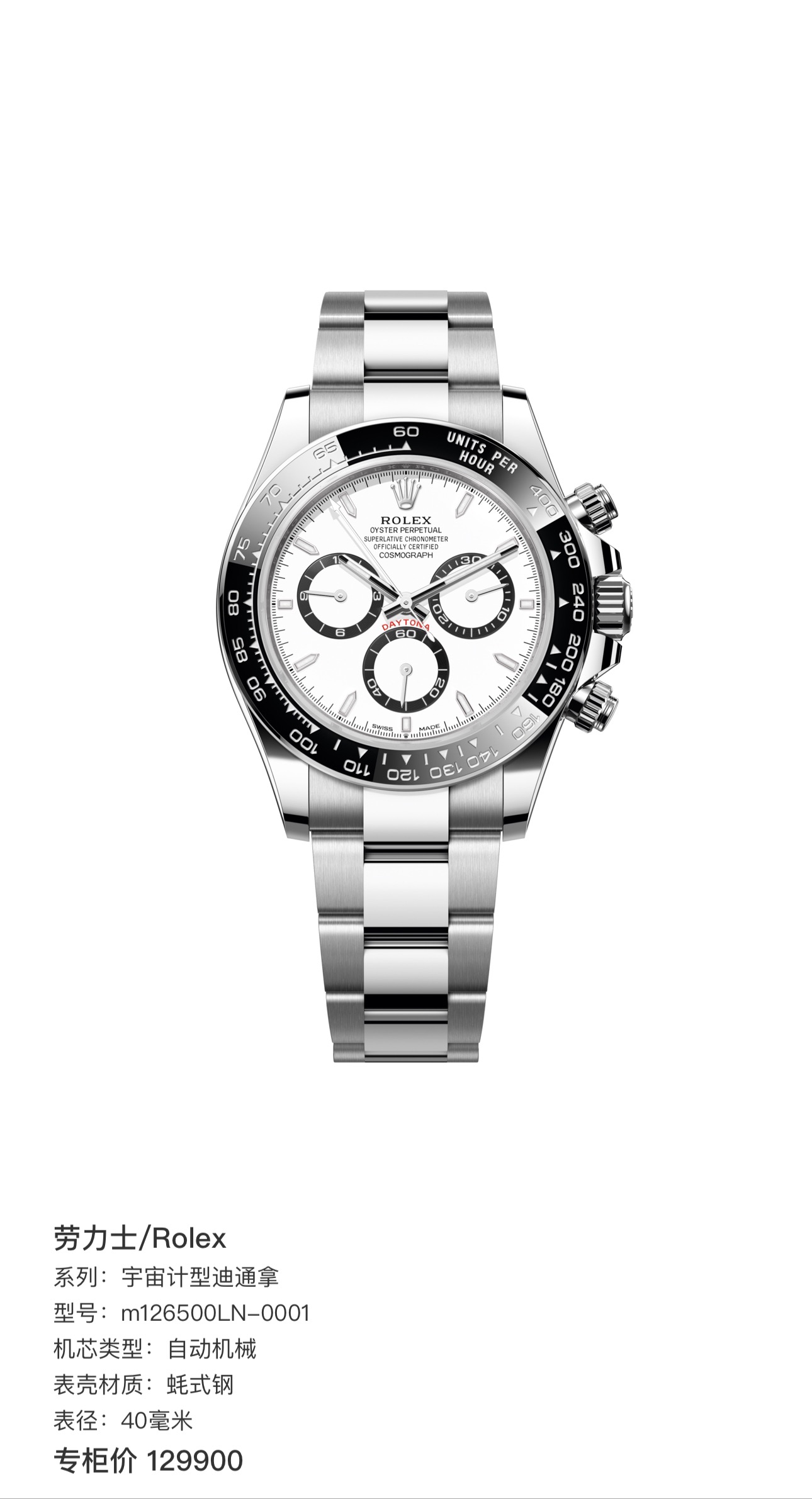劳力士/Rolex 宇宙计型迪通拿 m126500LN-0001 自动机械 蚝式钢 40毫米 专柜价129900