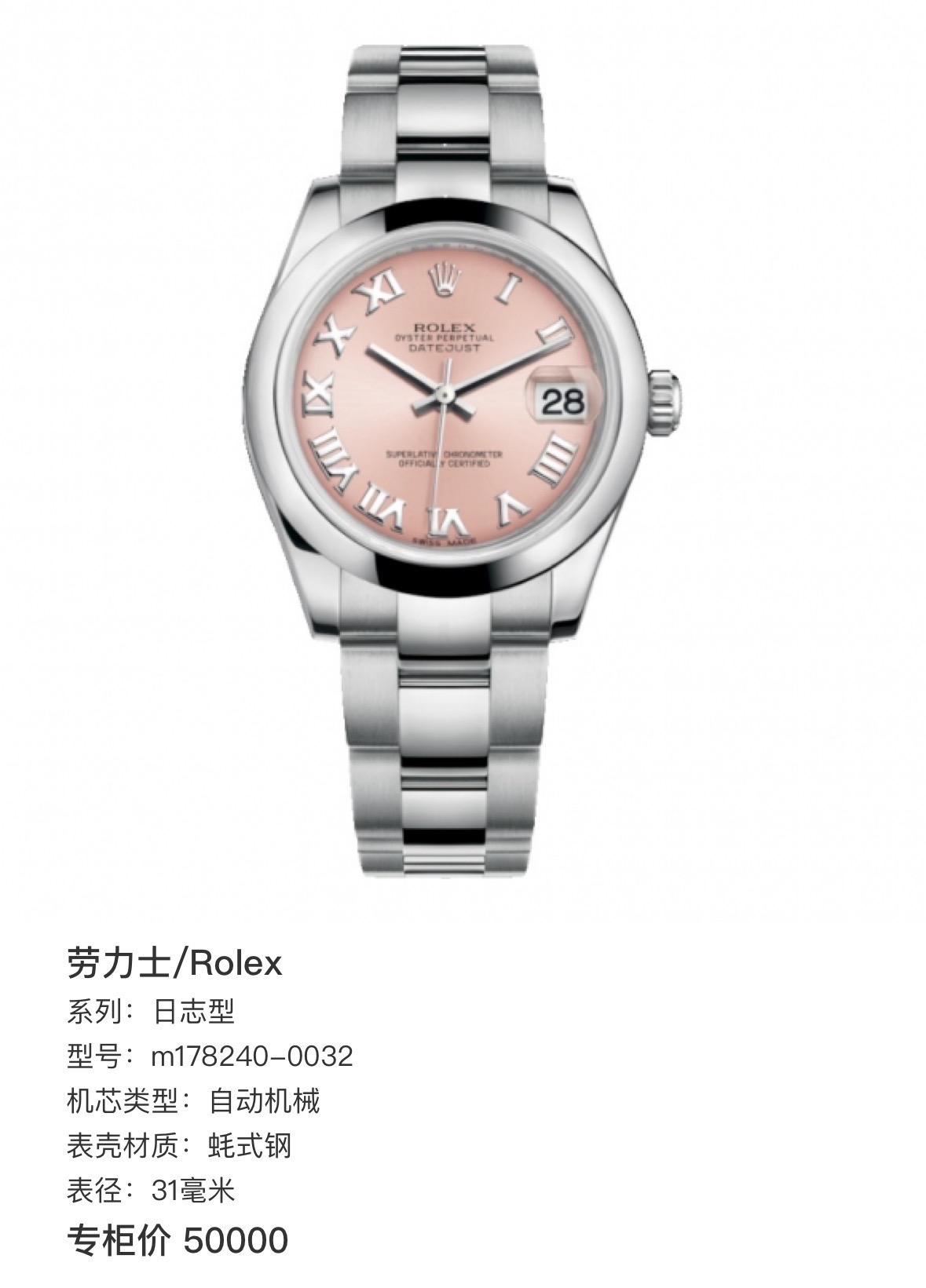 劳力士/Rolex 日志型 m178240-0032 粉盘罗马刻度 表径31毫米
