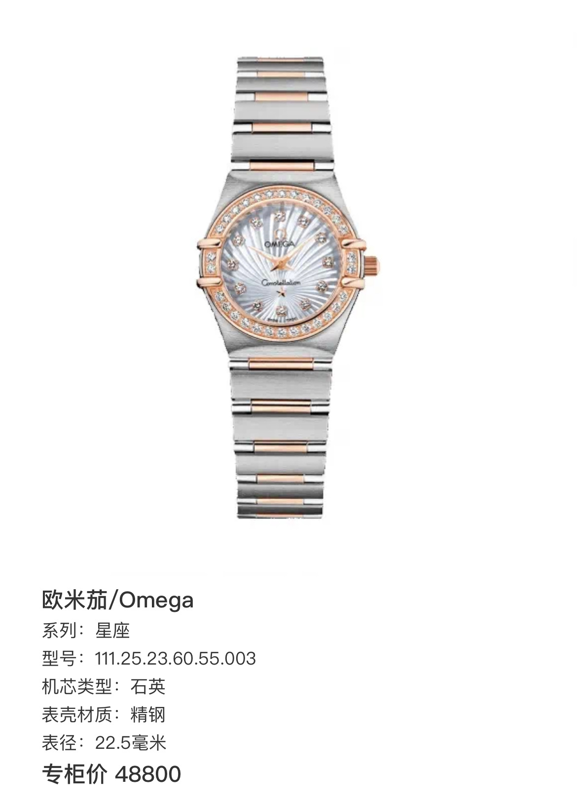 欧米茄/Omega 星座 111.25.23.60.55.003 石英 精钢 22.5毫米 专柜价48800。