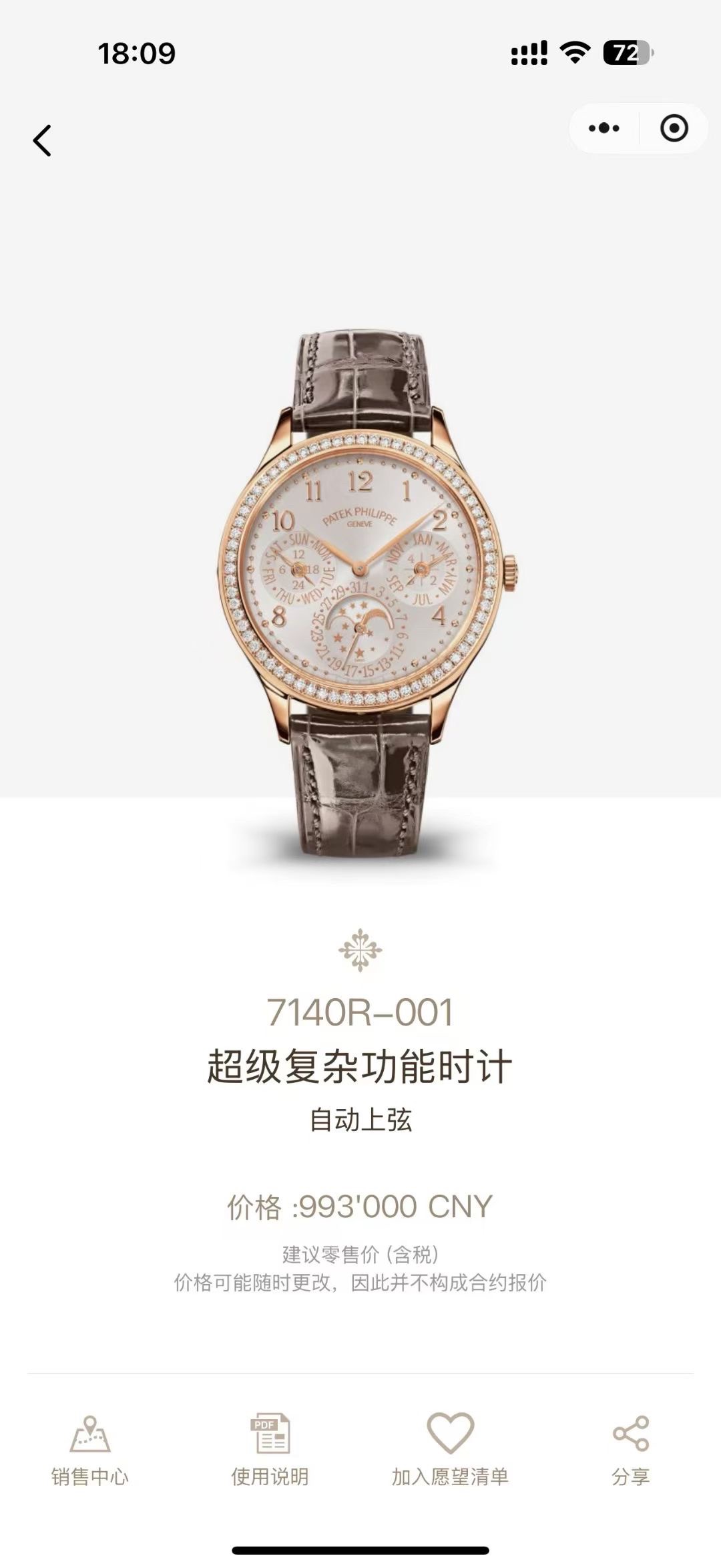 百达翡丽复杂功能计时腕表7140R-001机械女性