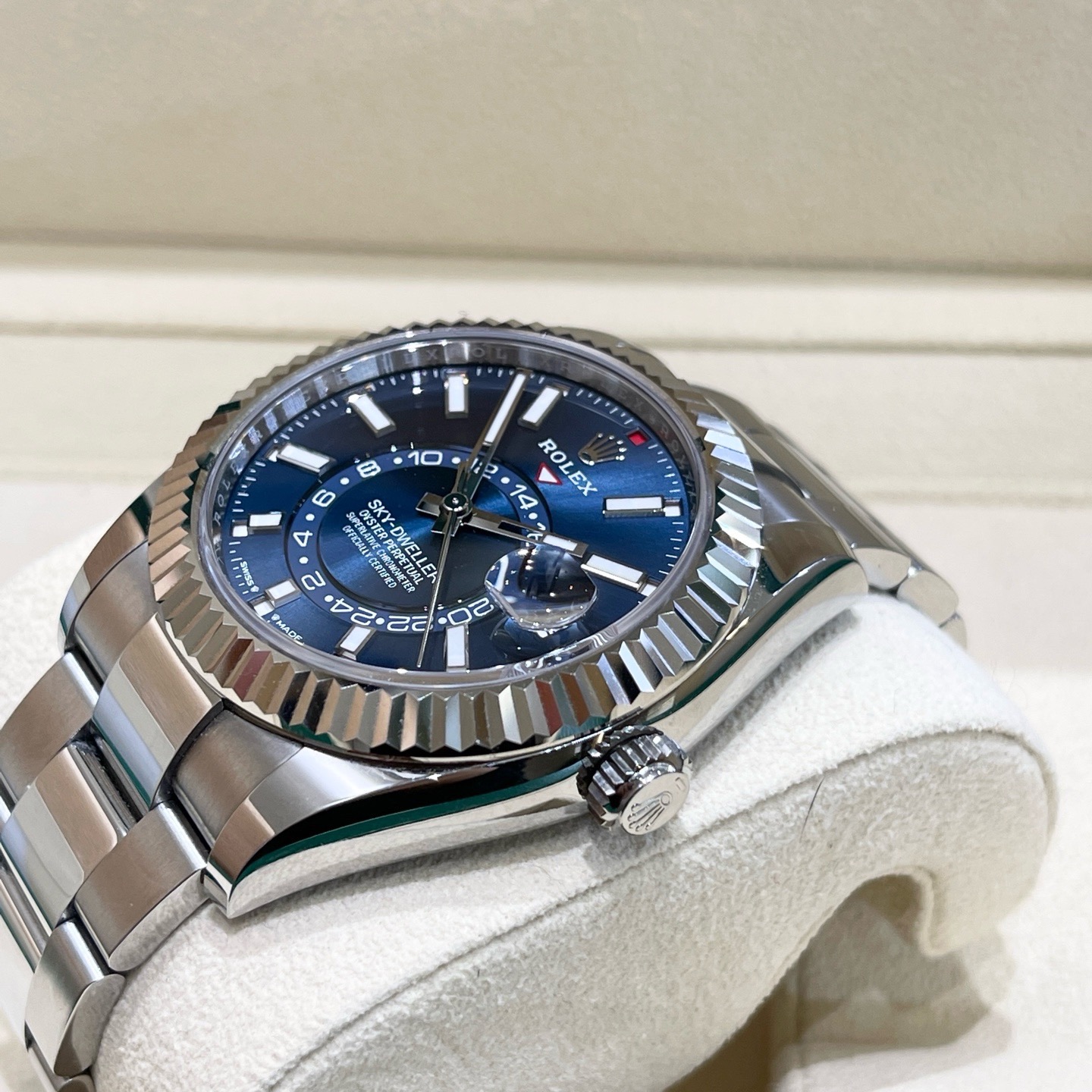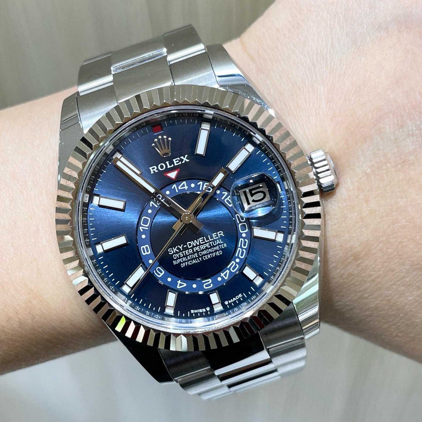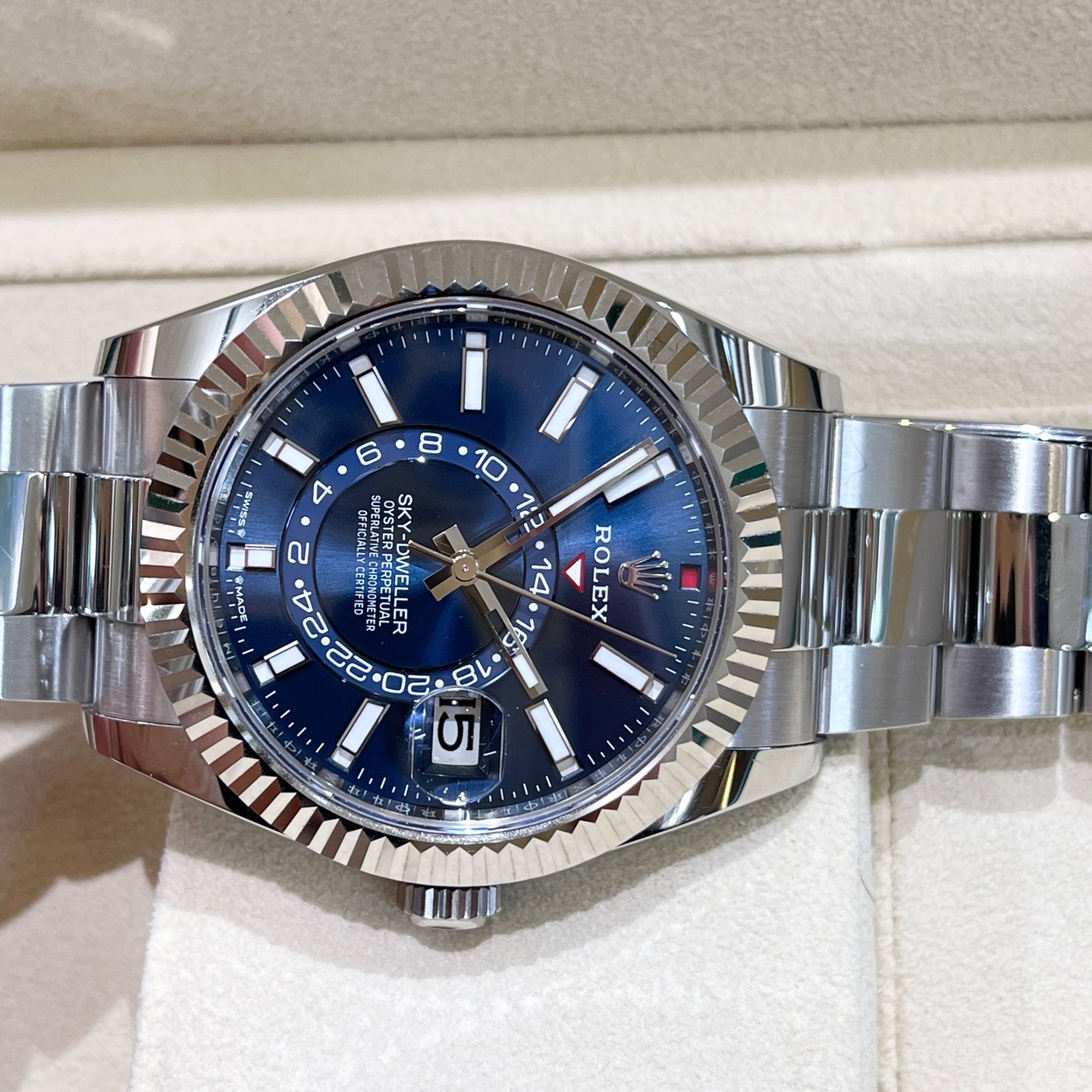 劳力士纵航者型 m336934-0004蓝色盘面,自动机械,白色黄金钢(蚝式钢与白色黄金),功能;月份显示 大日历 农历显示 双时区,