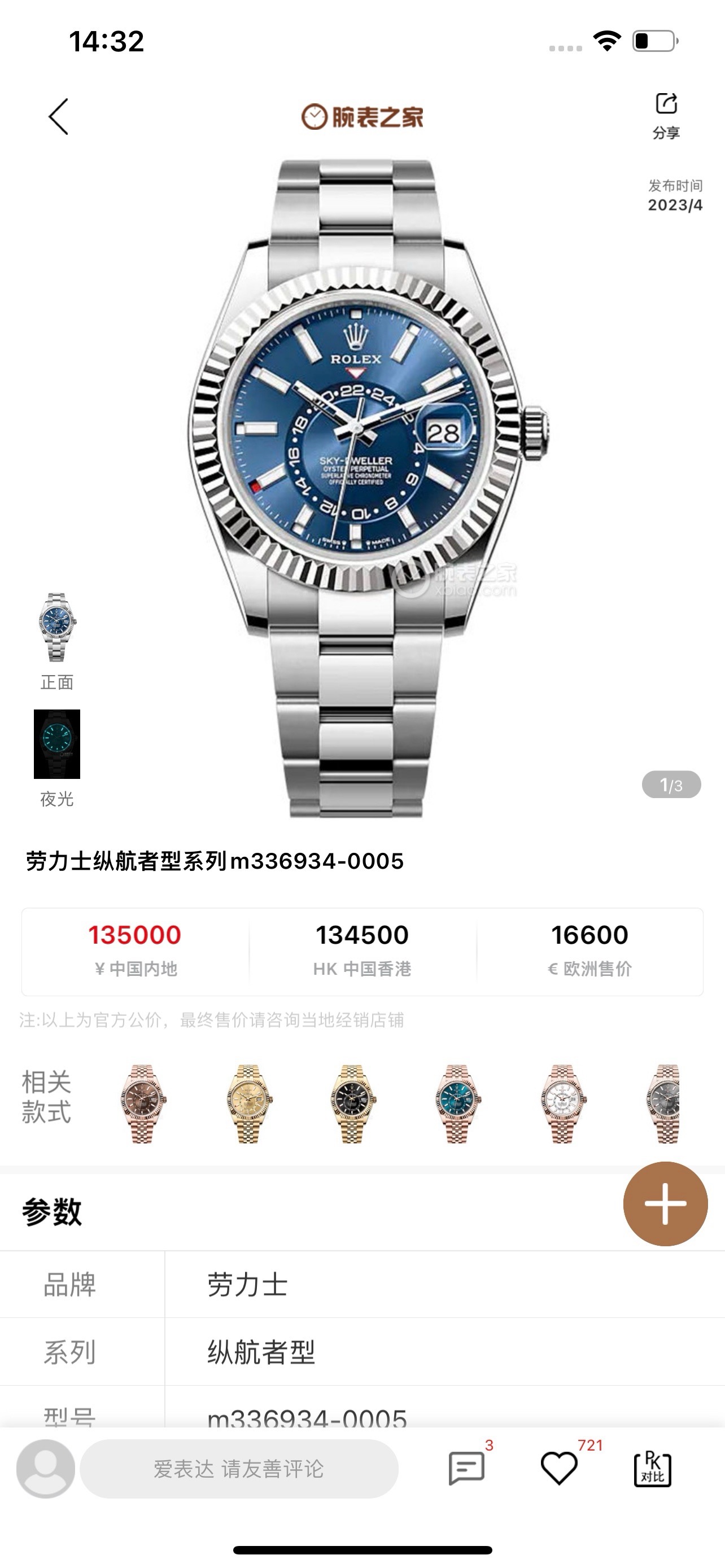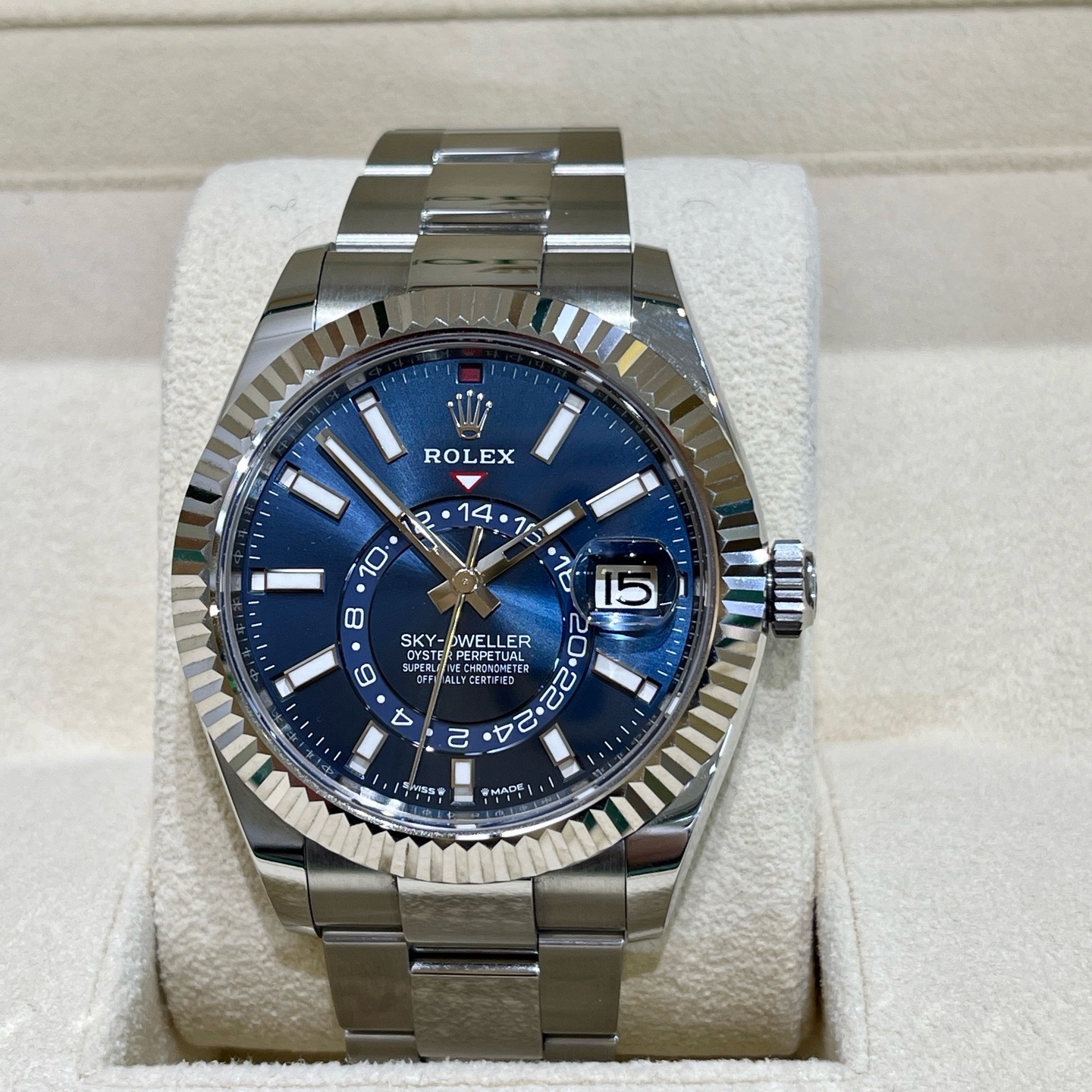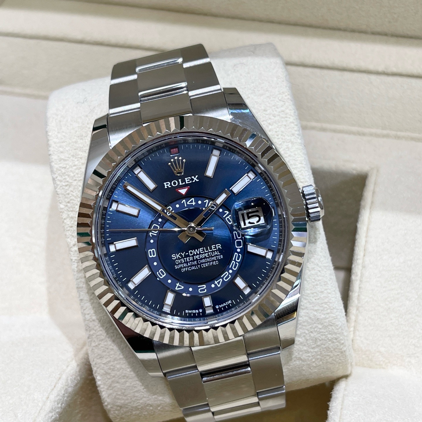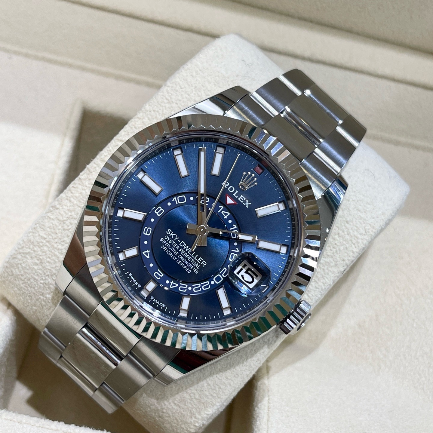 劳力士纵航者型 m336934-0004蓝色盘面,自动机械,白色黄金钢(蚝式钢与白色黄金),功能;月份显示 大日历 农历显示 双时区,
