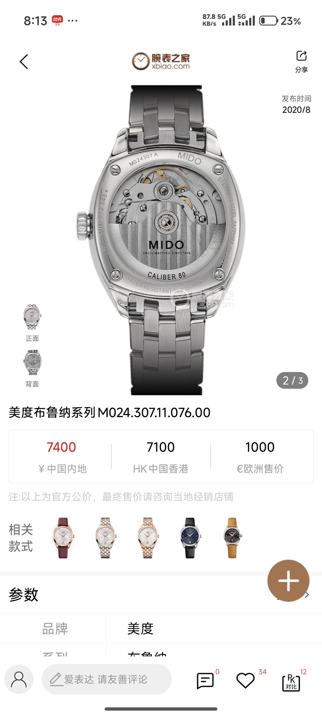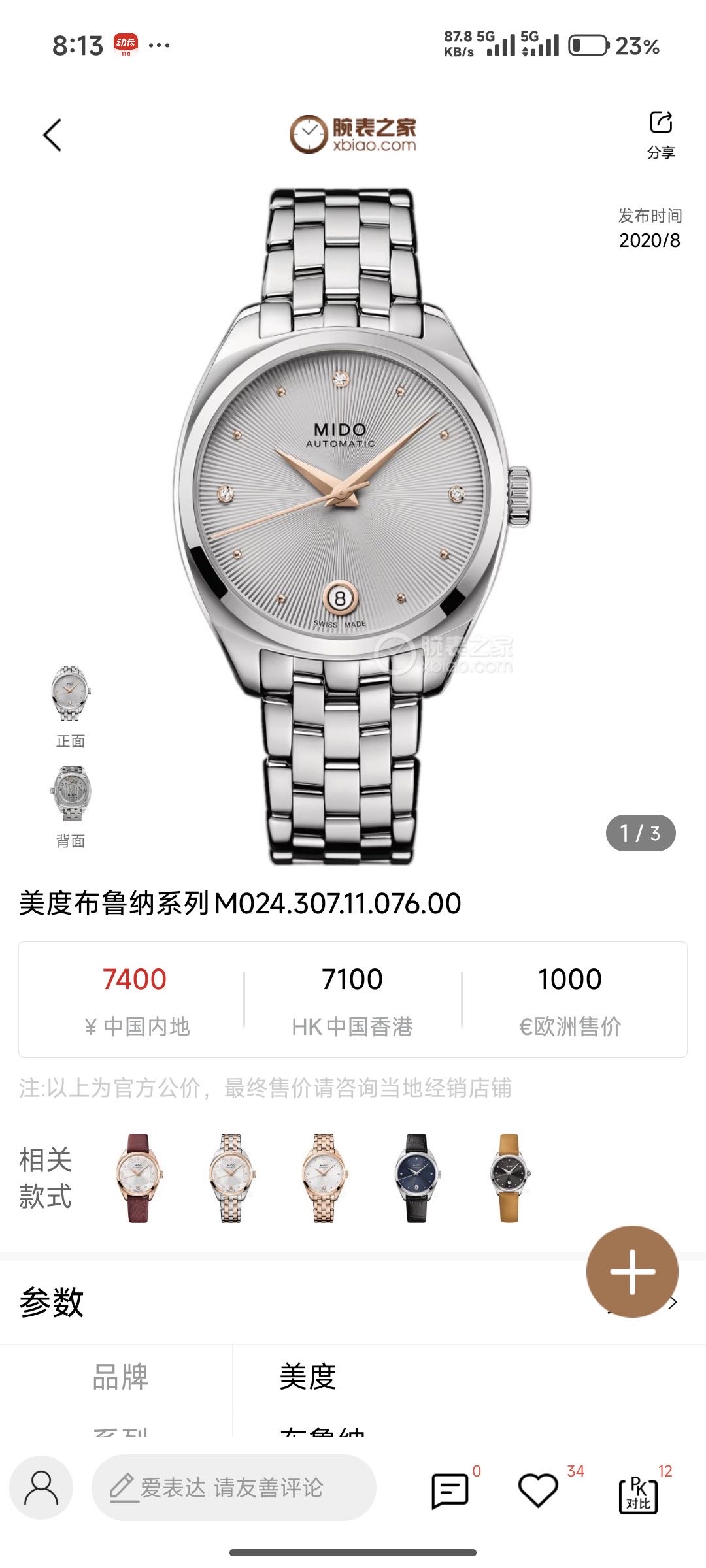 美度布鲁纳 BELLUNAM024.307.11.076.00机械女性