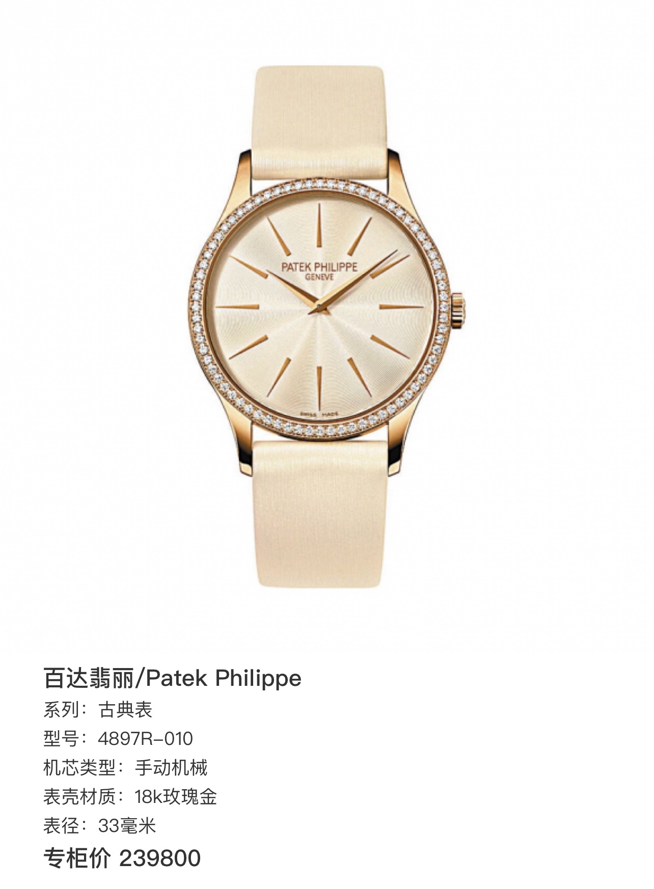 百达翡丽古典系列自动机械女士腕表型号4897R-010 表径33 公价239800 18k金材质 简洁大气 现货好价