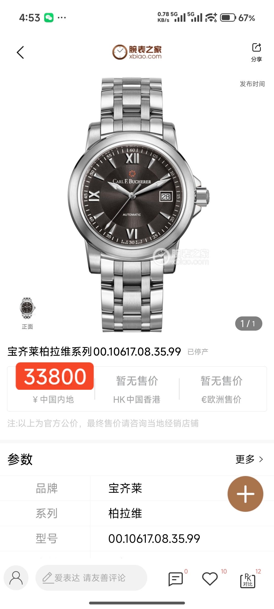 宝齐莱/Carl F.Bucherer 柏拉维 00.10617.08.35.99 自动机械 精钢 38毫米 专柜价33800元 国行全新未使用25年12月卡