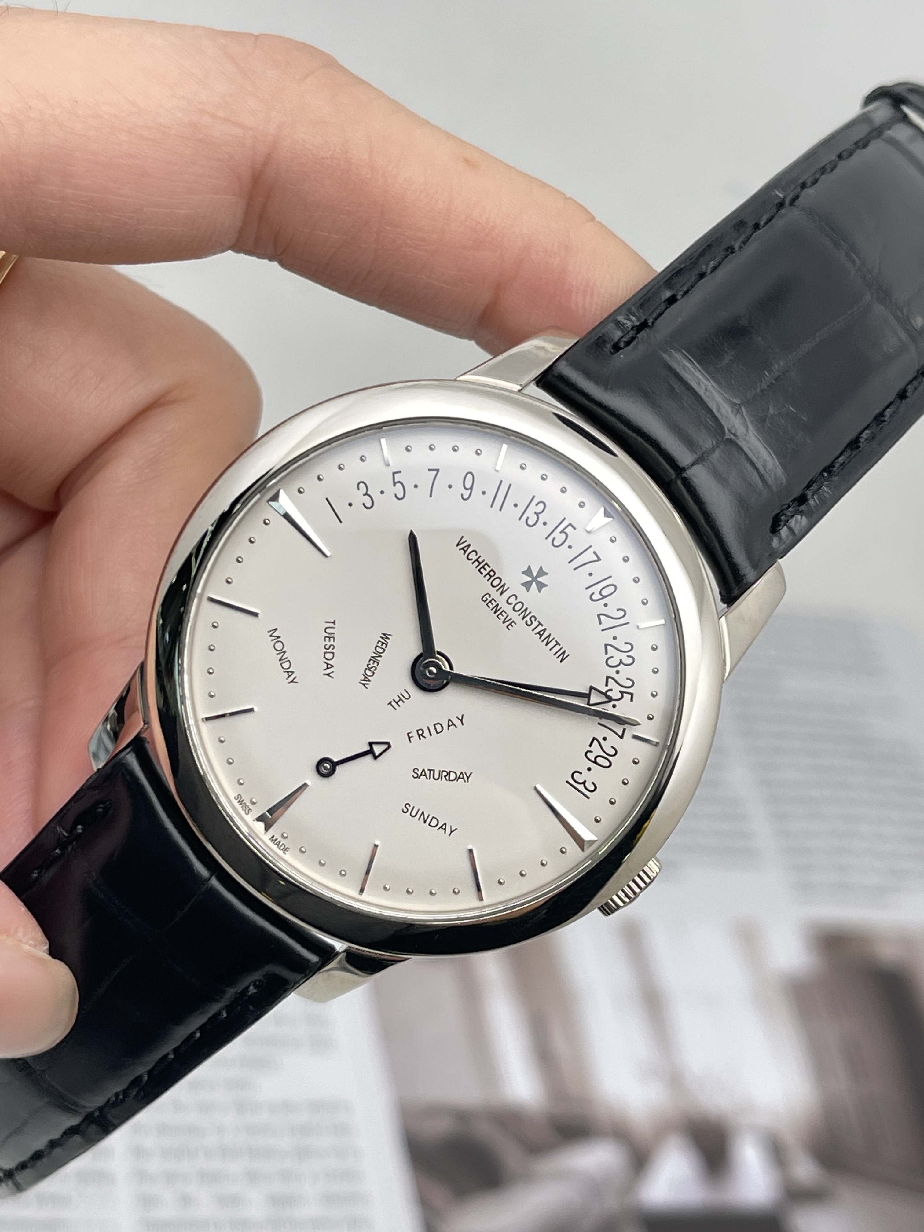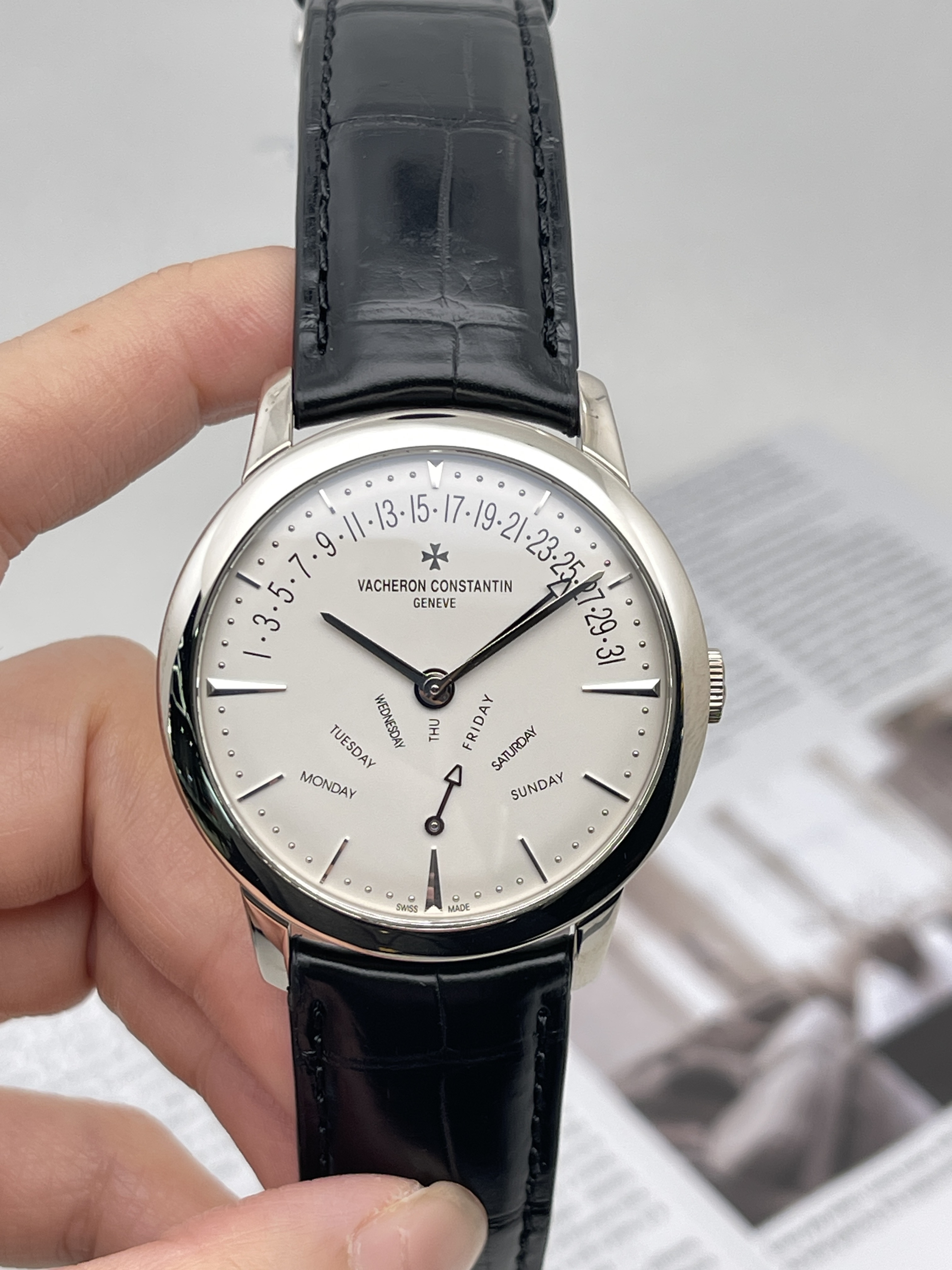 江诗丹顿传承系列86020/000G-9508 日期星期双飞返设计 18K白金材质 自动机械 42.5mm 透底机芯 折叠扣 单表 公价33.9w 现货好价