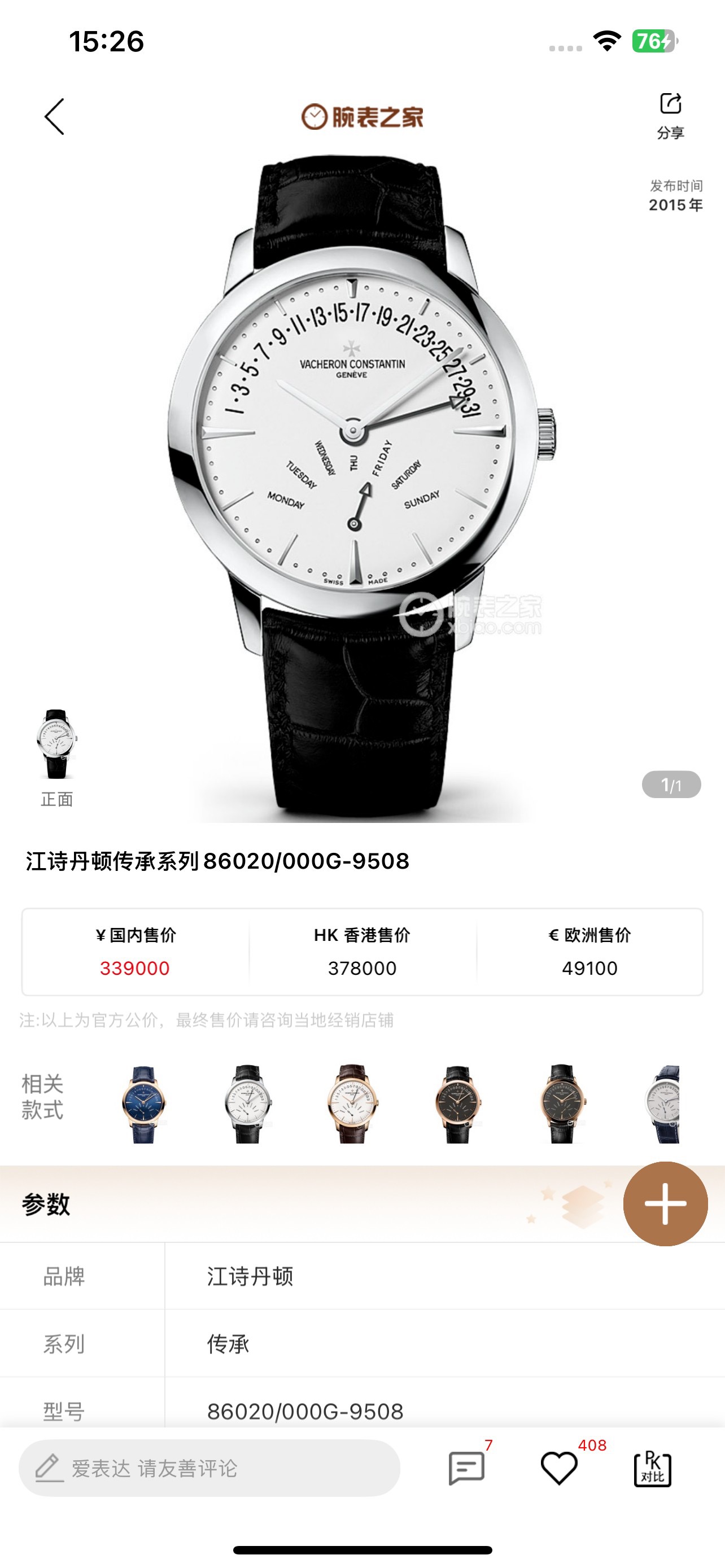 江诗丹顿传承Patrimony86020/000G-9508机械男性