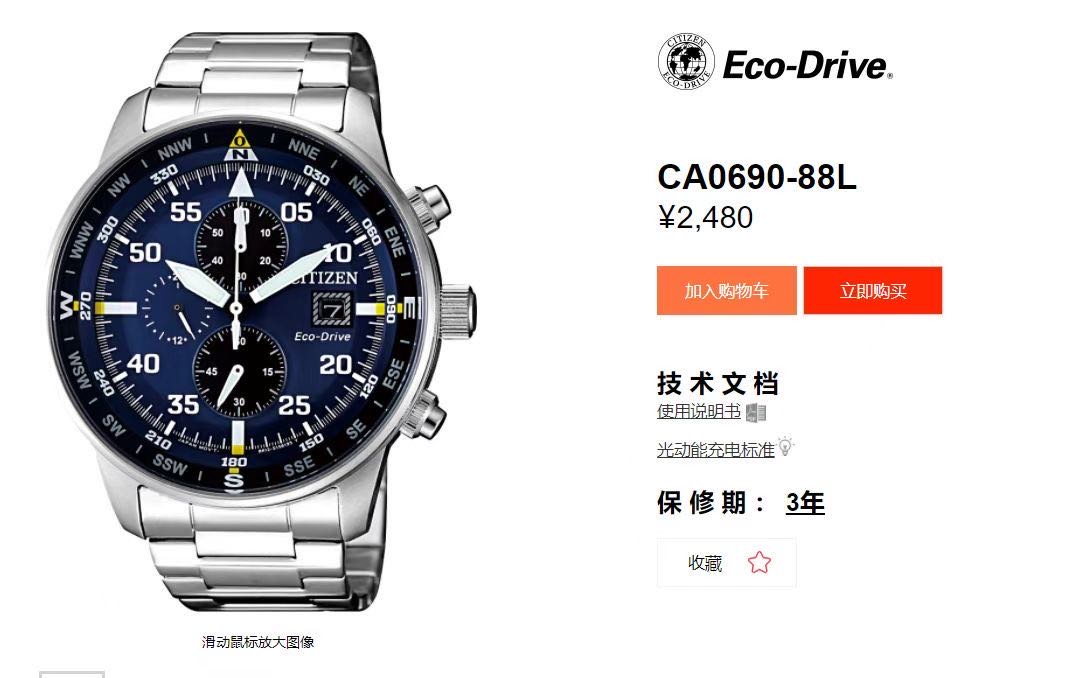 【国内公价2480元 光动能机芯 Eco-Drive】西铁城 光动能表系列CA0690-88L腕表 全新全套全球联保近期保卡
