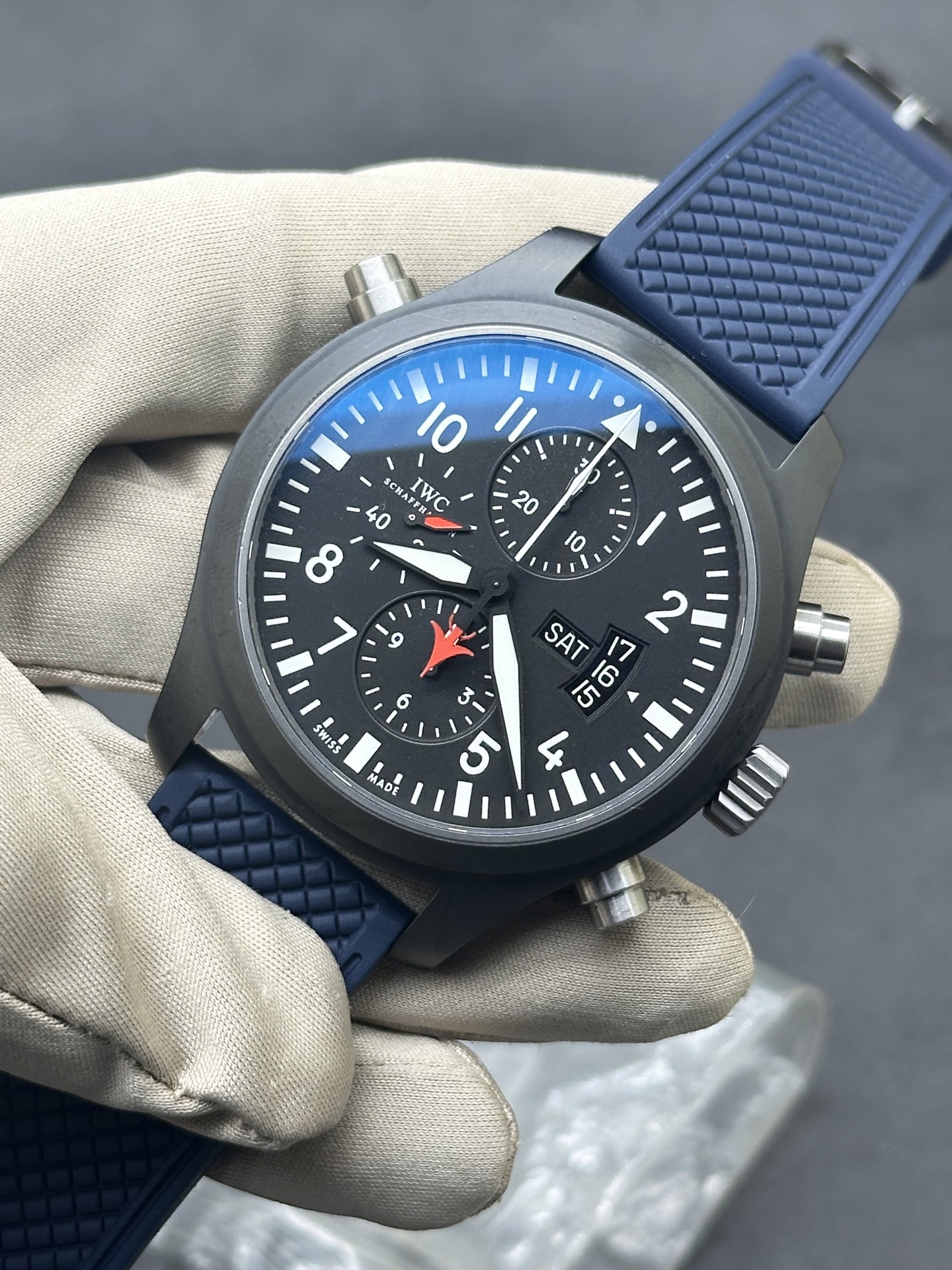 【单表黑陶瓷飞行员】IWC万国飞行员系列IW379901,Top Gun海军空战部队双秒追针计时,大表径46mm,钛金属/陶瓷表壳,复杂多功能,二手单表,公价96000,现好价
