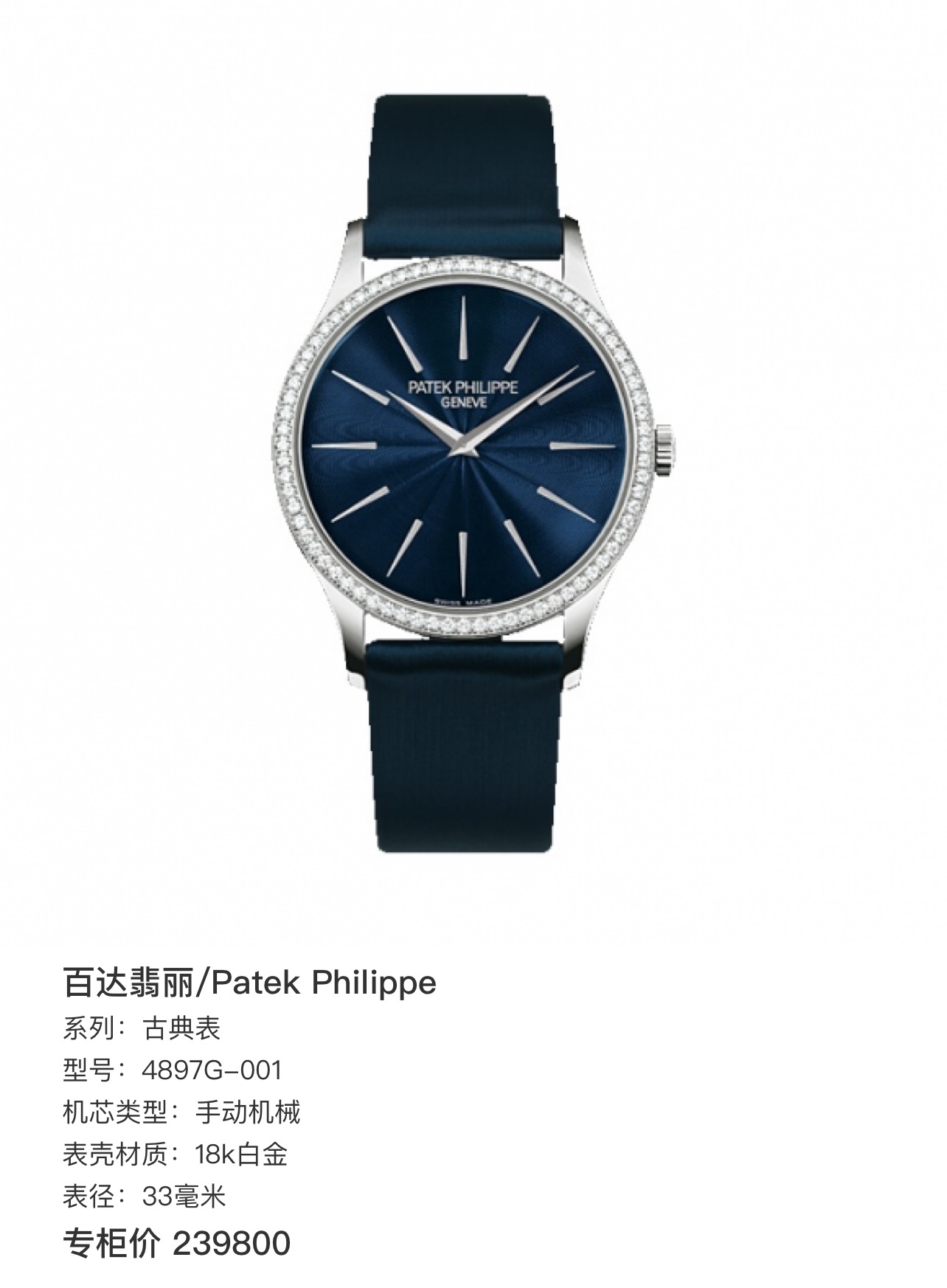 百达翡丽/Patek Philippe 古典表 4897G-001 手动机械 18k白金 33毫米 专柜价239800 单表 好价