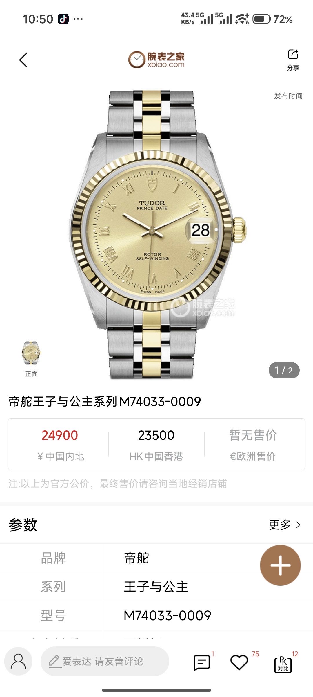 帝舵王子M74033-0009机械女性