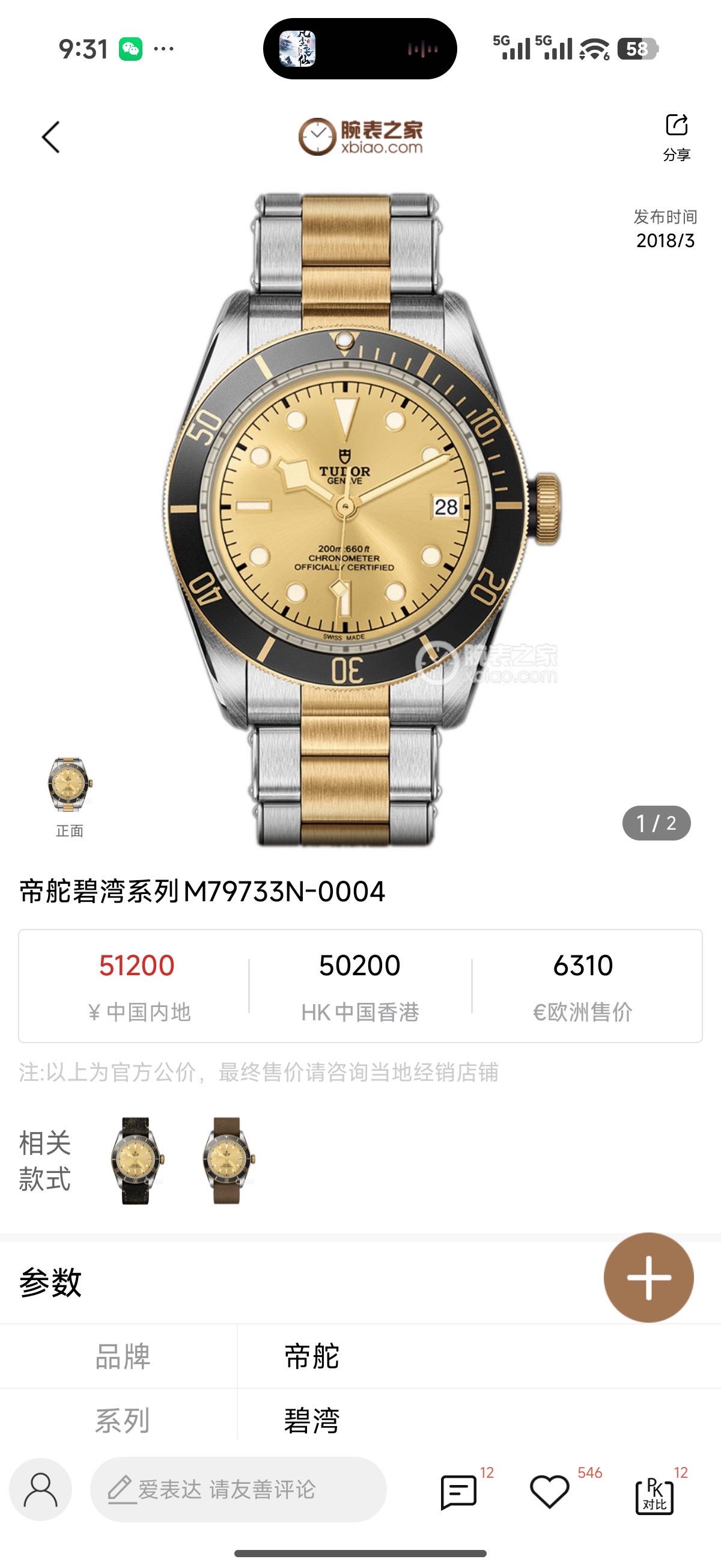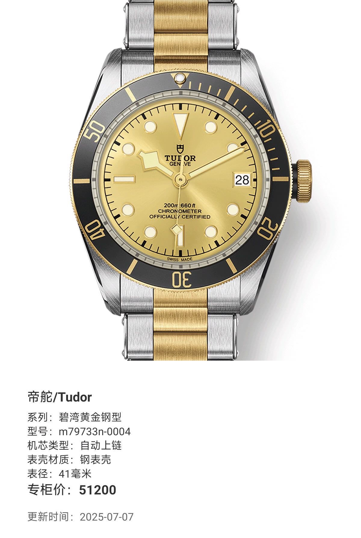 帝舵/Tudor 碧湾黄金钢型 m79733n-0004 自动上链 钢表壳 41毫米 专柜价51200