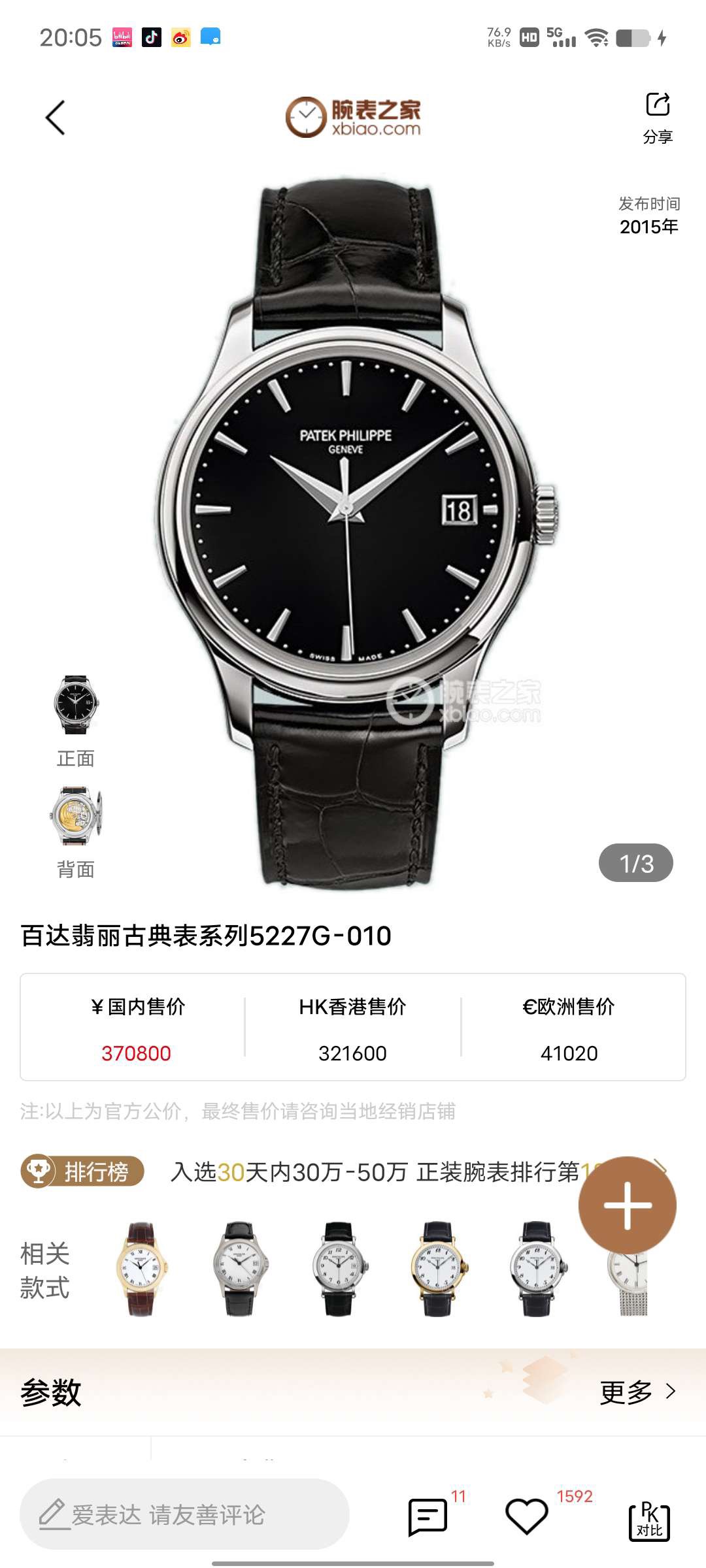 百达翡丽/Patek Philippe 古典表 5227G 自动机械 18k白金 将官邸 39毫米,专柜价 370800。库存未使用品,单表,现货好价 喜欢联系