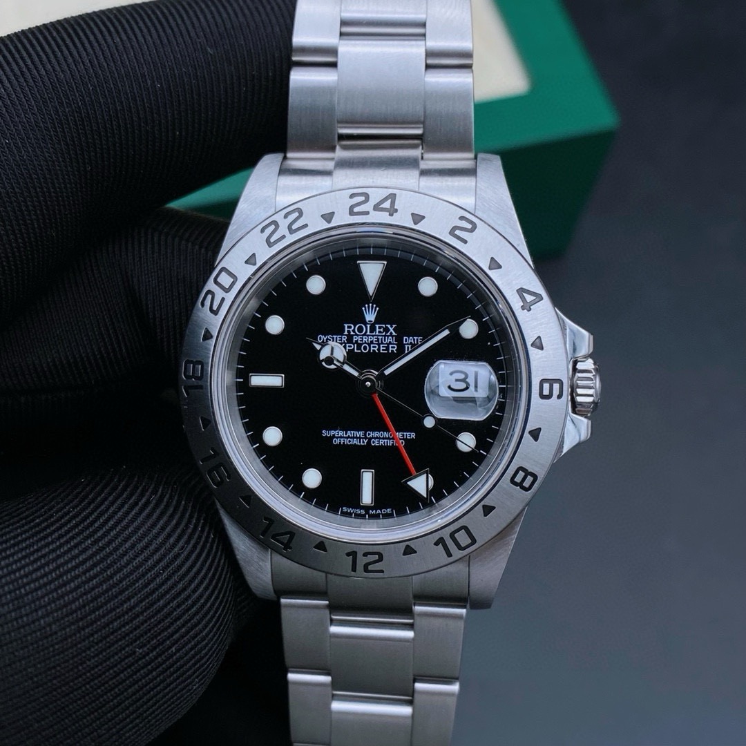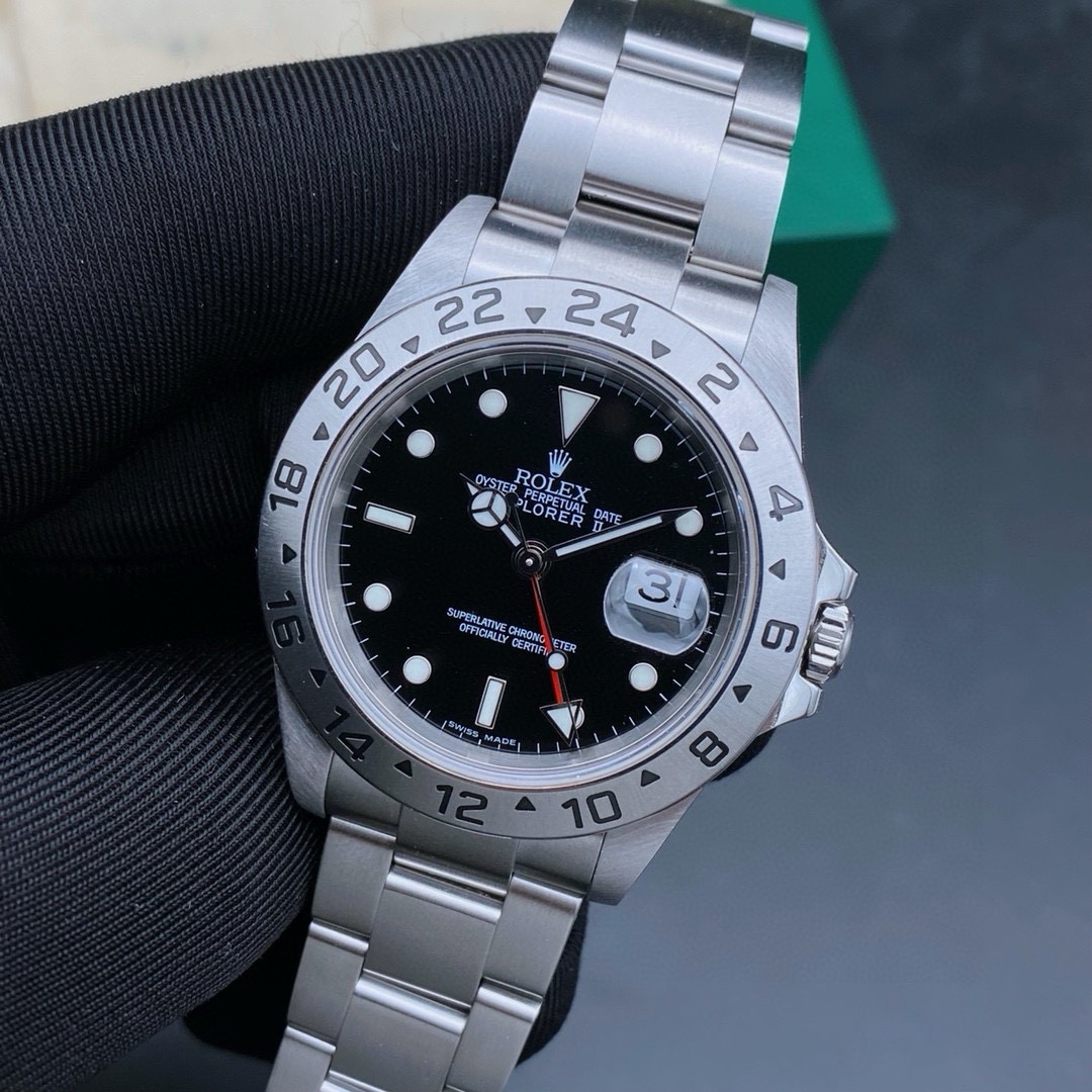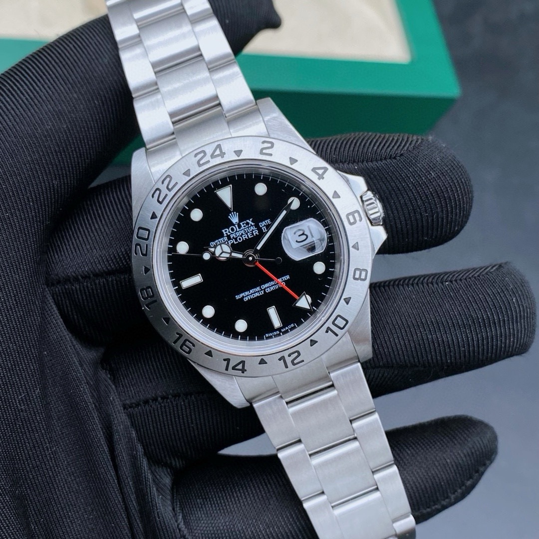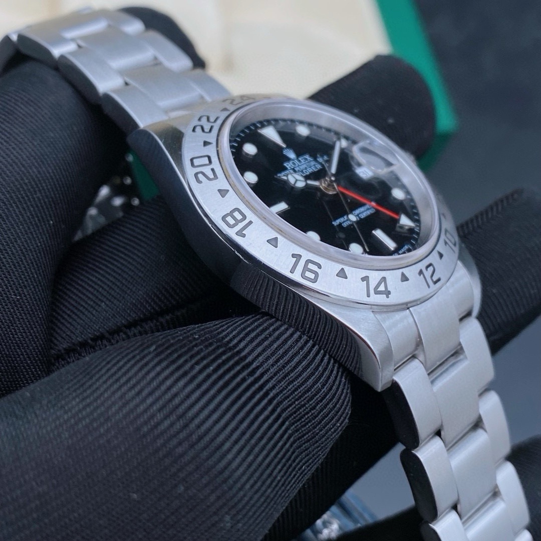 劳力士探险家16570男士腕表探二,精钢材质,搭载自动机械,表径42mm,黑色盘面简约大方干净素雅,红色GMT两地时指针,外圈GMT时针刻度,大热门款新表超工价64700