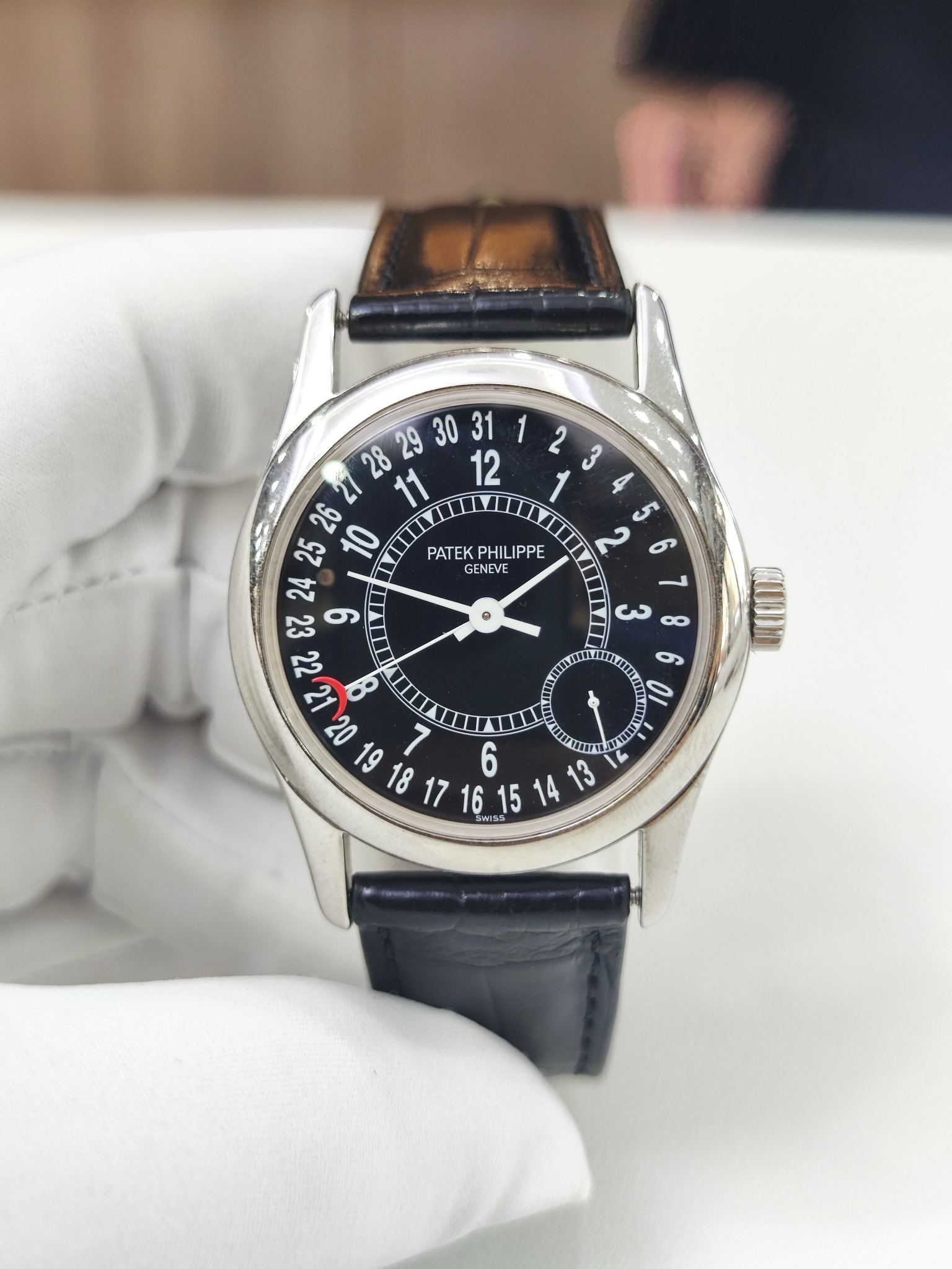 百达翡丽 古典表 6000G 男款自动机械 表径37 整表 18k白金材质 黑盘小秒针设计 偏心陀 单表无附件 专柜售价251200 现货好价。