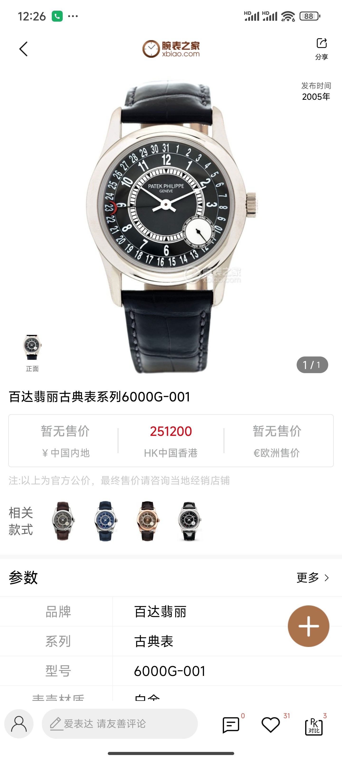 百达翡丽古典表6000机械男性