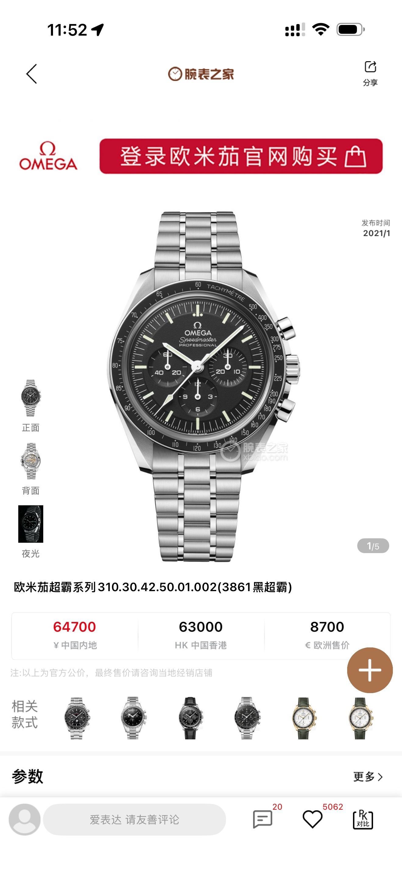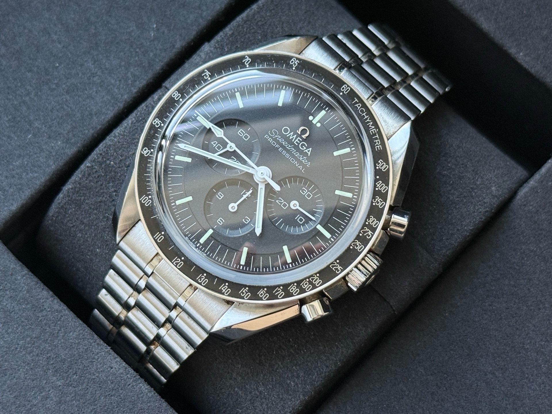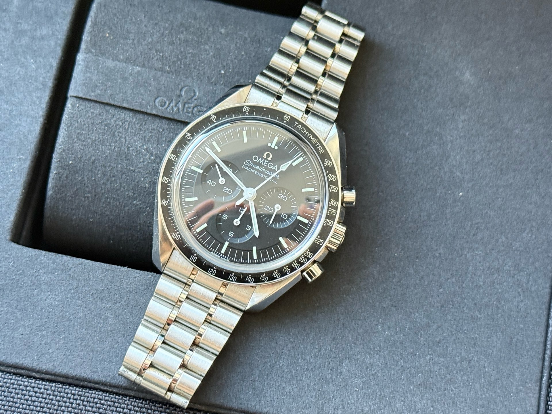 欧米茄310.30.42.50.01.002超霸系列男士手动机械,第四代超霸月球表,3861手动机芯50小时动储,表径42mm,全长表节,25全套,专柜价64700现好价出
