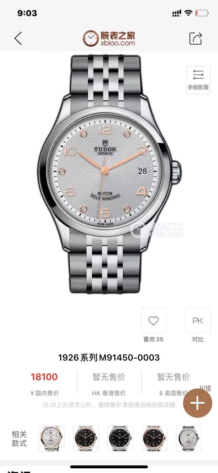 帝舵1926系列M91450-0003男表!36径,刻度钻石 ,2023保卡,国行全新全套官方联保,专柜价格20400