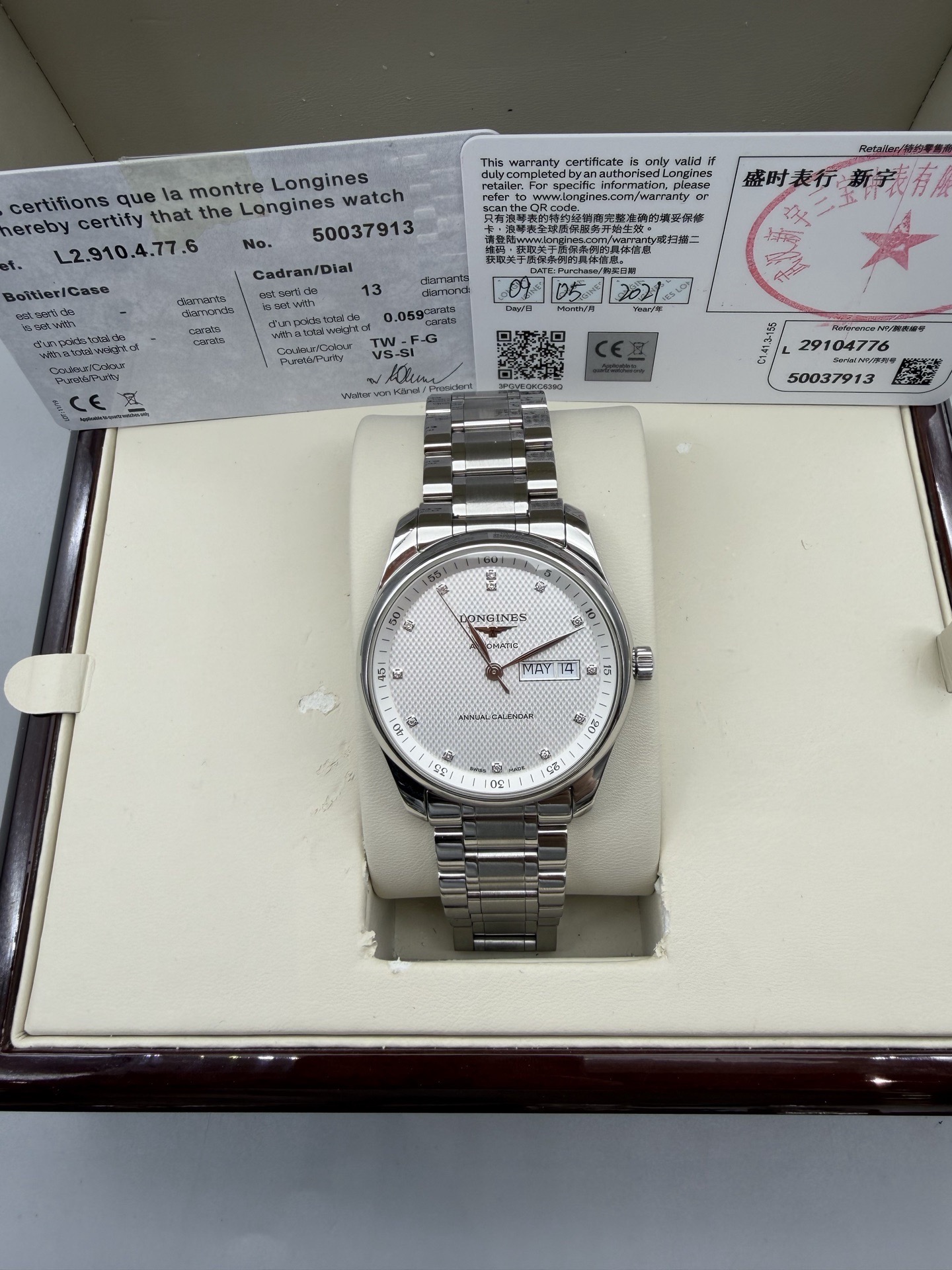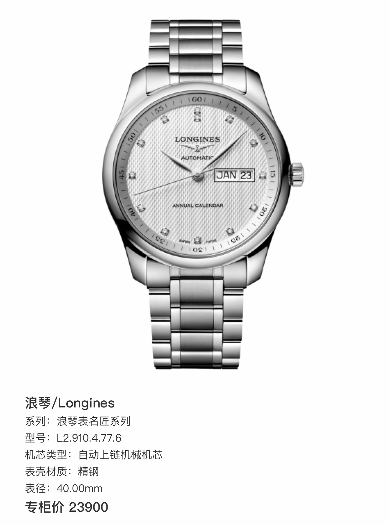 型号:L2.910.4.77.6(男士 机械表)