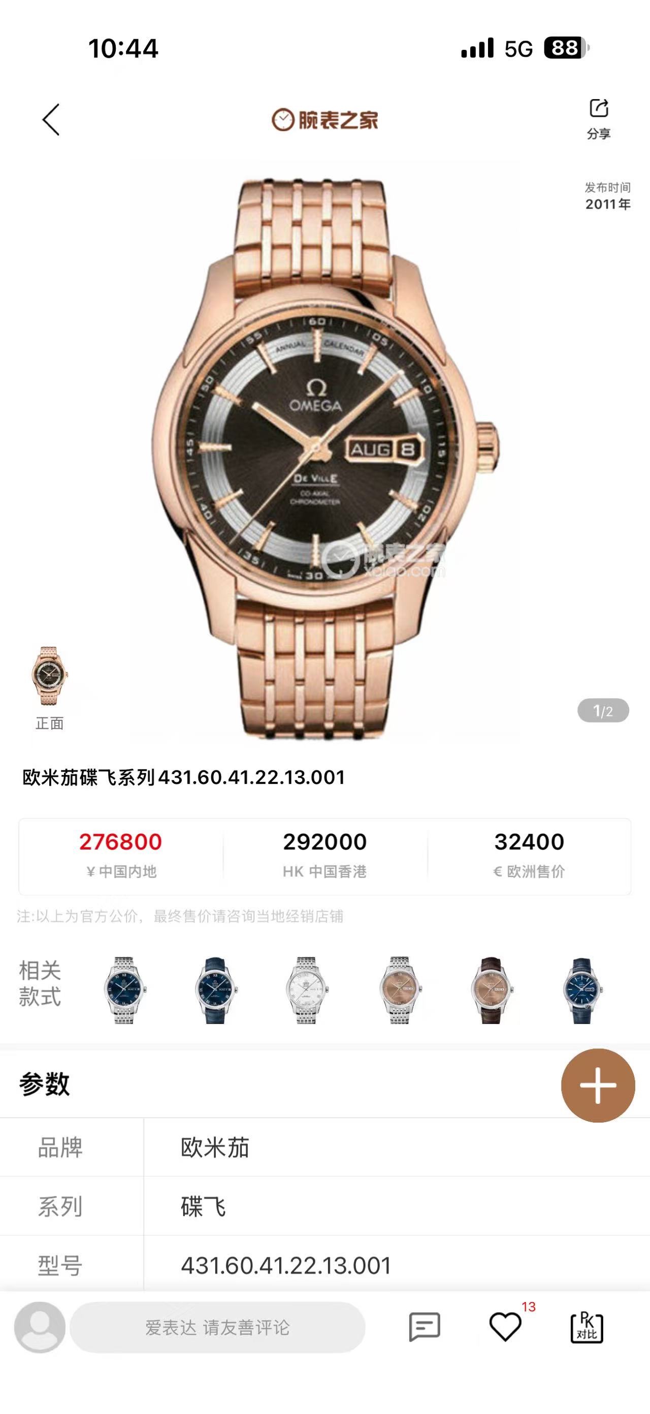 欧米茄碟飞431.60.41.22.13.001机械男性