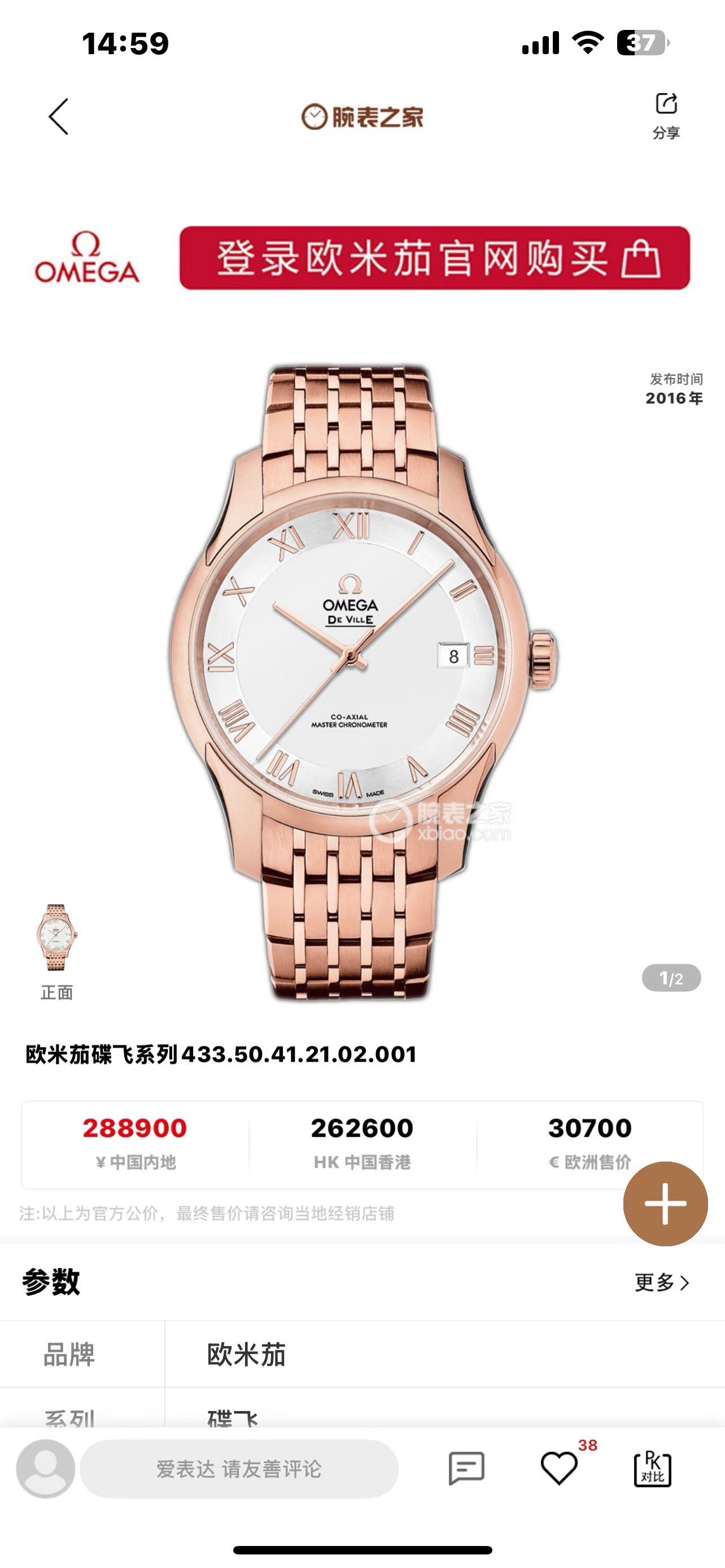 欧米茄碟飞433.50.41.21.02.001机械男性