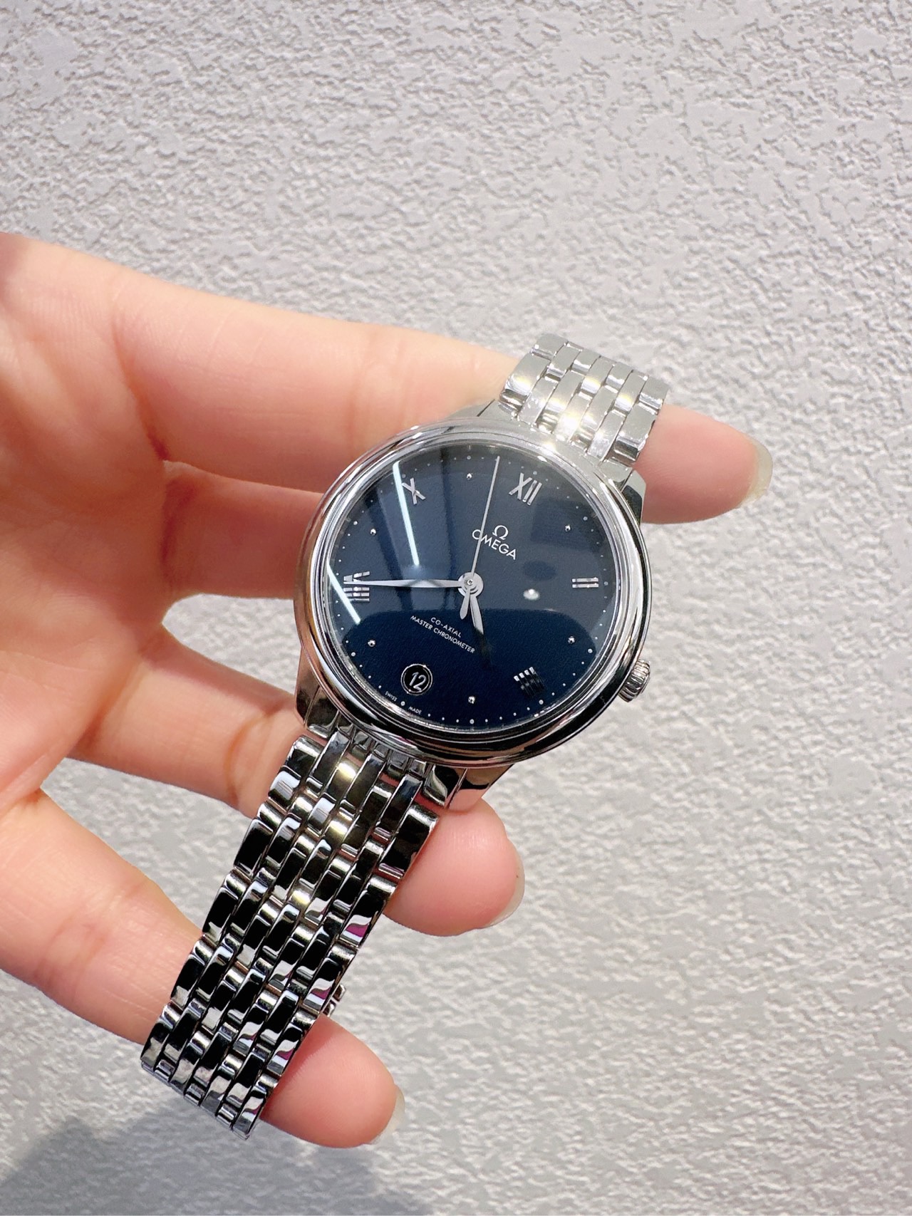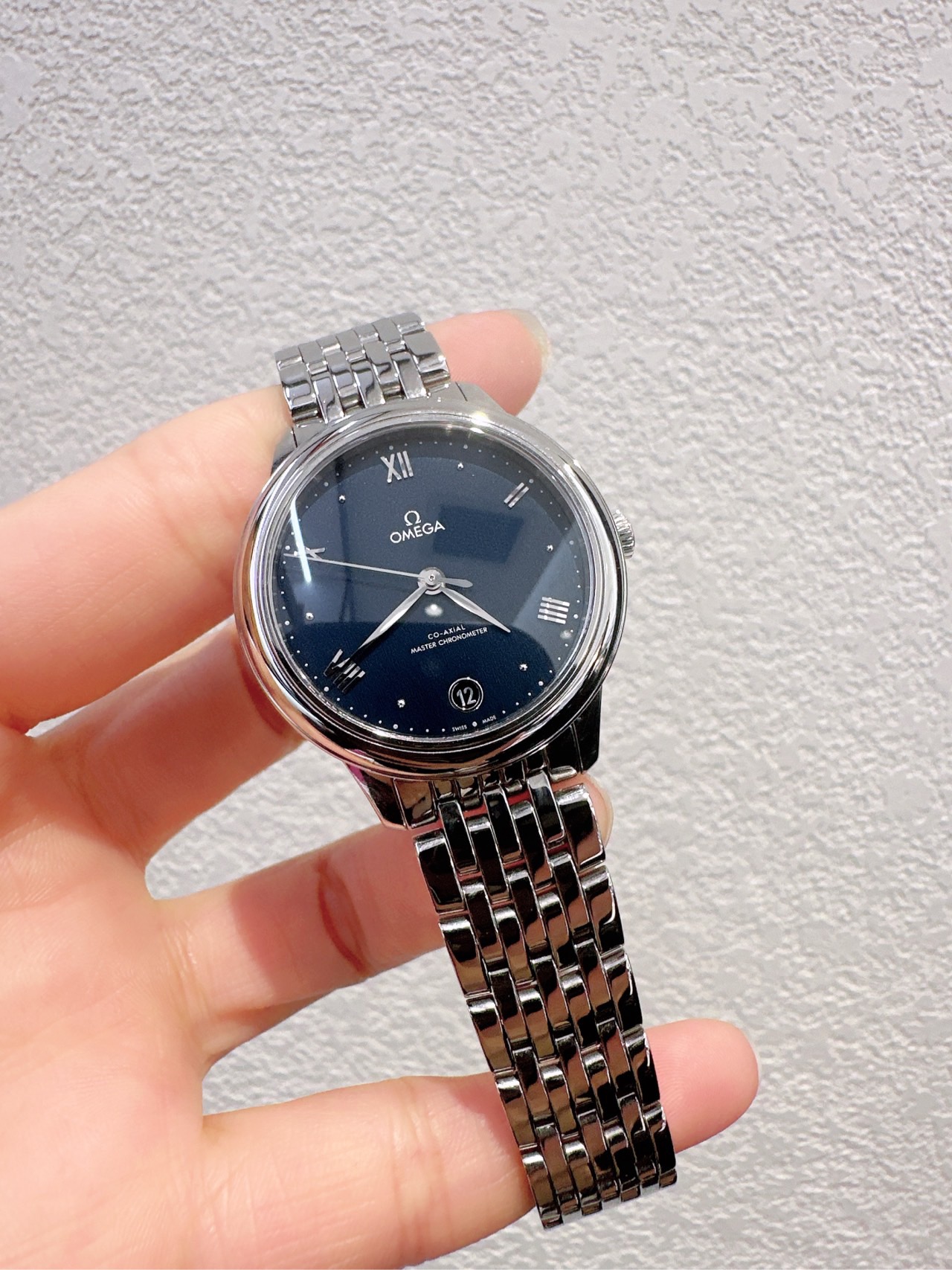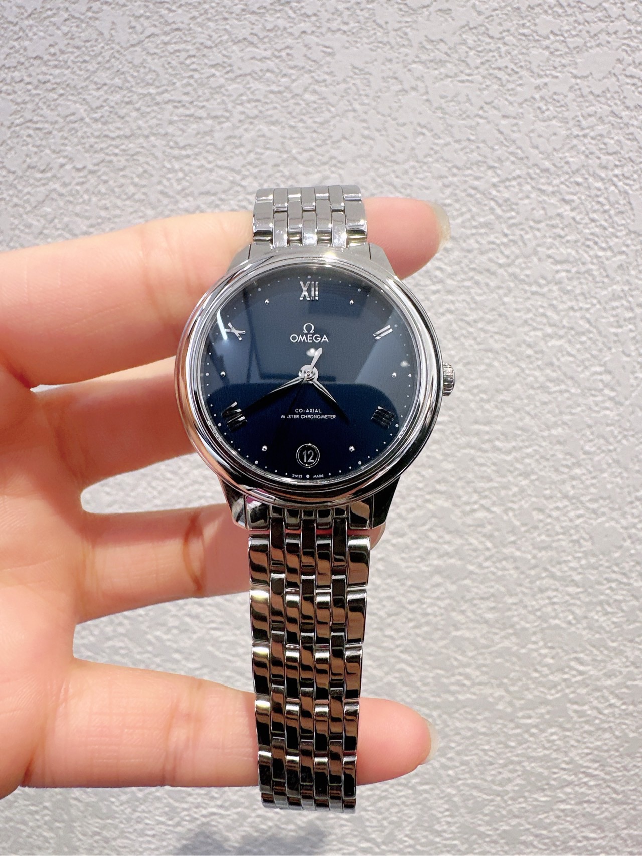欧米茄碟飞系列434.10.34.20.03.002 自动机械腕表,表径34 ,蓝色盘面搭配银色指针刻度,日期显示,公价39700,现货好价
