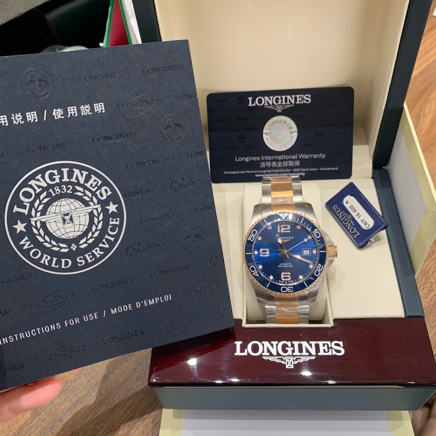 浪琴/Longines 康卡斯潜水系列 L3.781.3.98.7 自动上链机械机芯 精钢与红色PVD镀金 41.00mm 专柜价16400 未使用