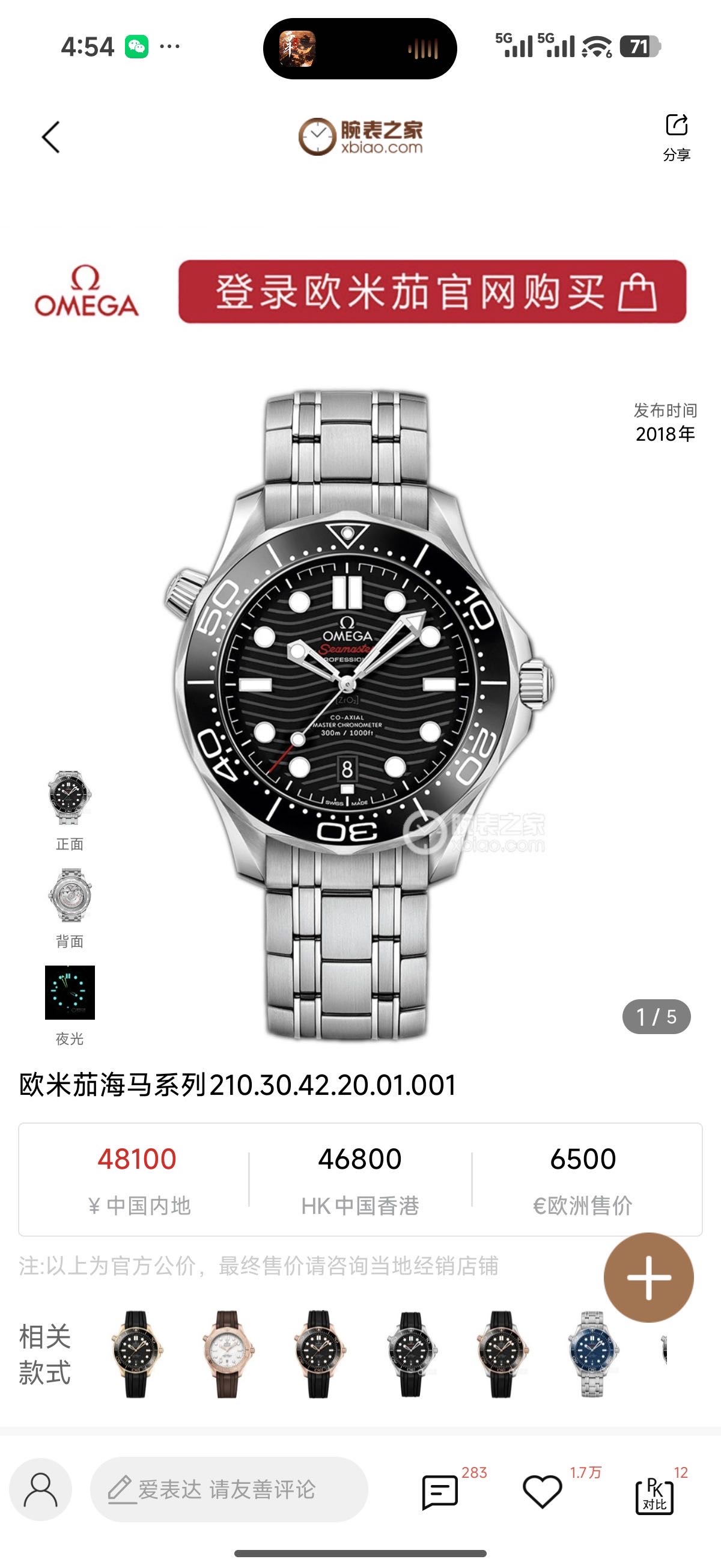欧米茄海马系列210.30.42.20.01.001