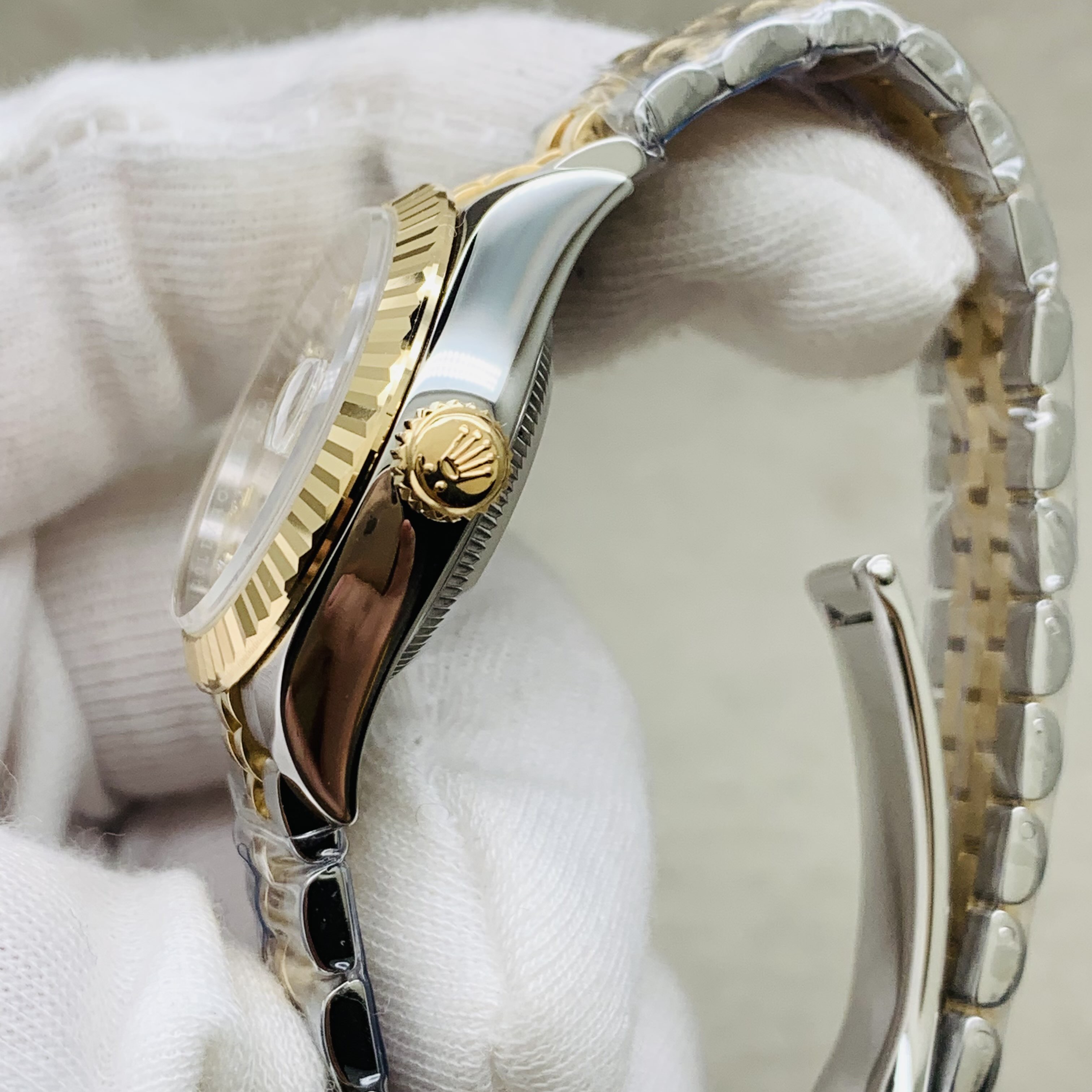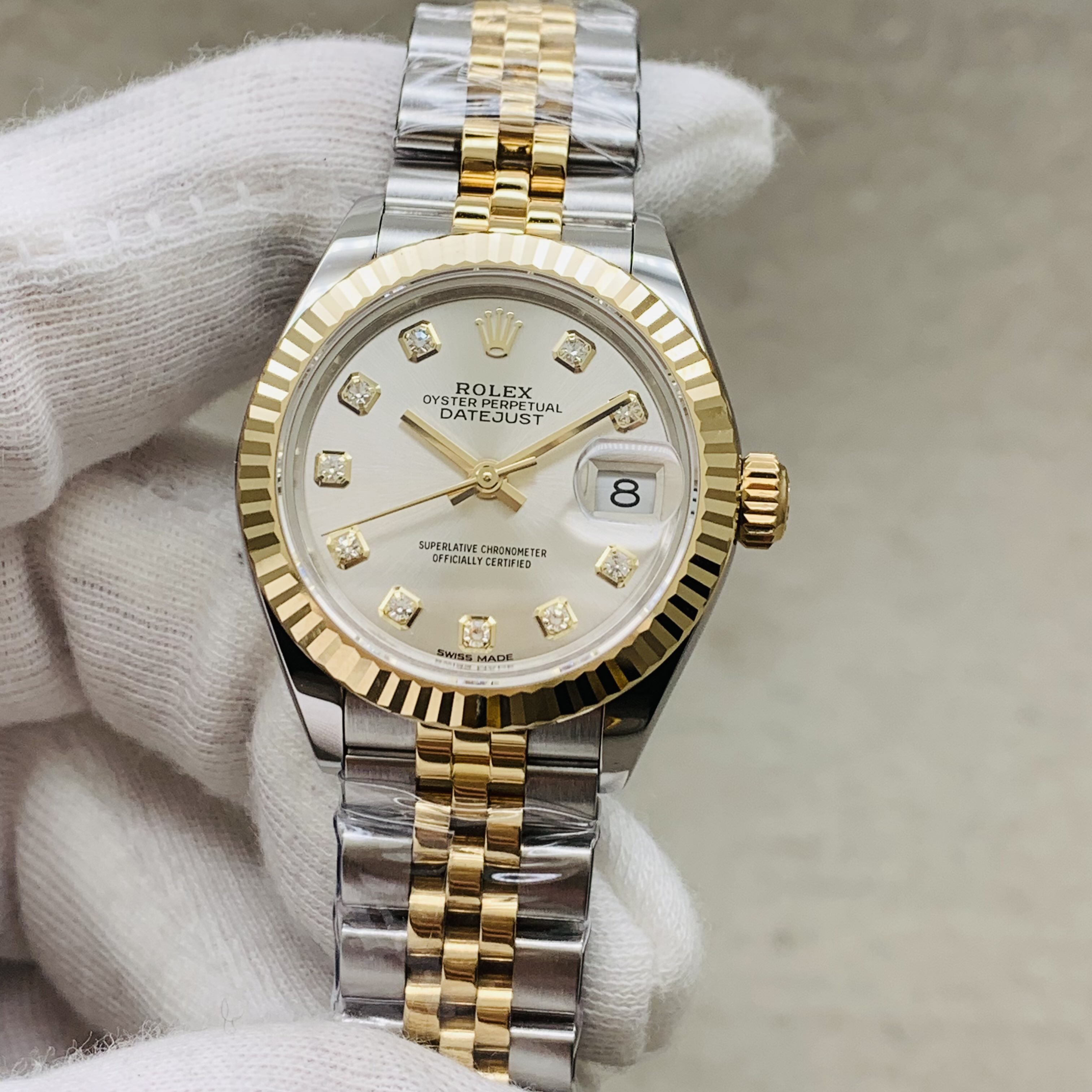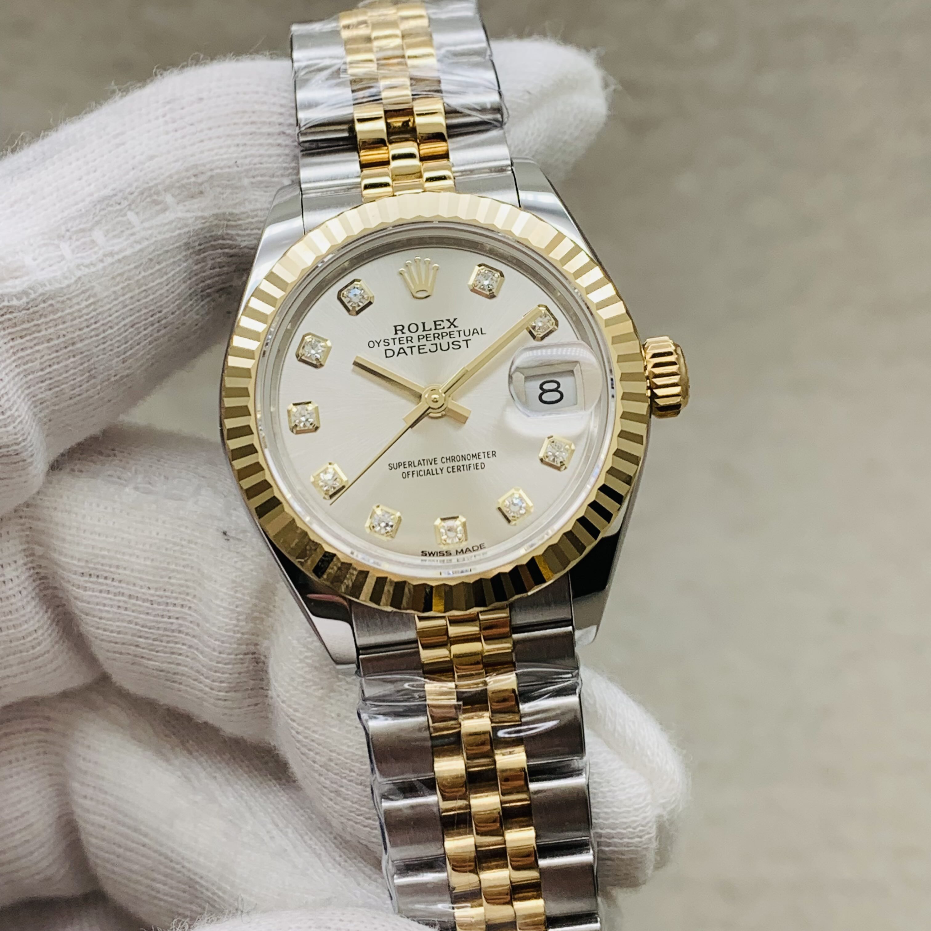 劳力士/女装日志型 m279173-0007 单表无附件 女士机械腕表 黄金外圈 间金表带 银盘带钻 表径28 专柜价118700 二手好价。