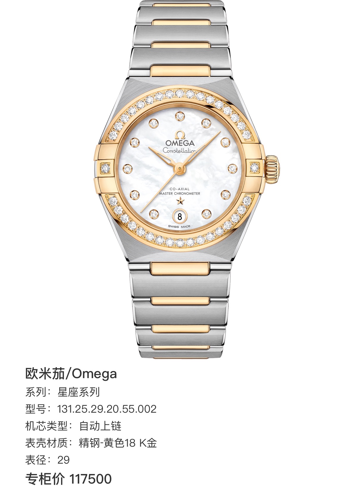 国行全新 欧米茄/Omega 星座系列 131.25.29.20.55.002 自动上链 29 专柜价117500
