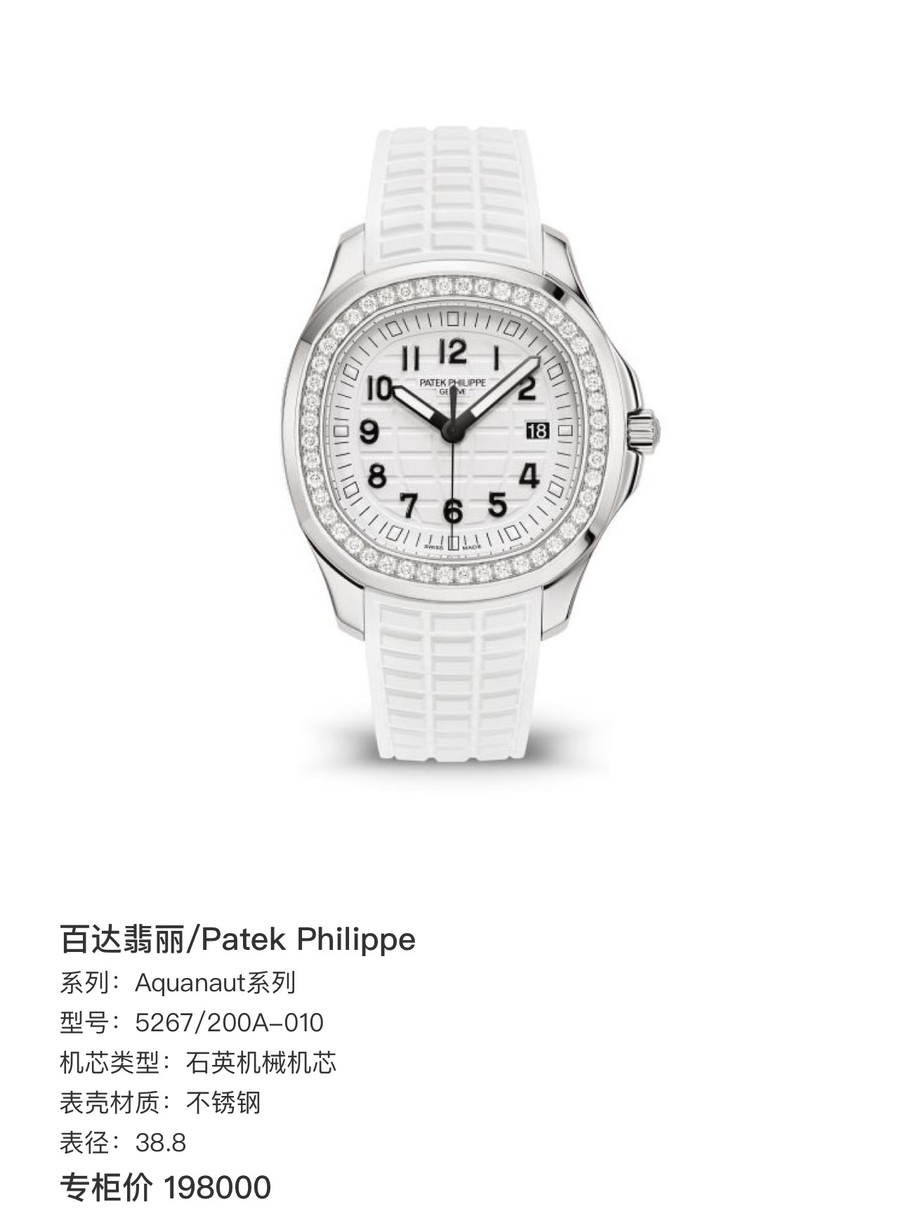 百达翡丽/Patek Philippe Aquanaut系列 5267/200A-010 石英机械机芯 不锈钢 38.8 专柜价198000