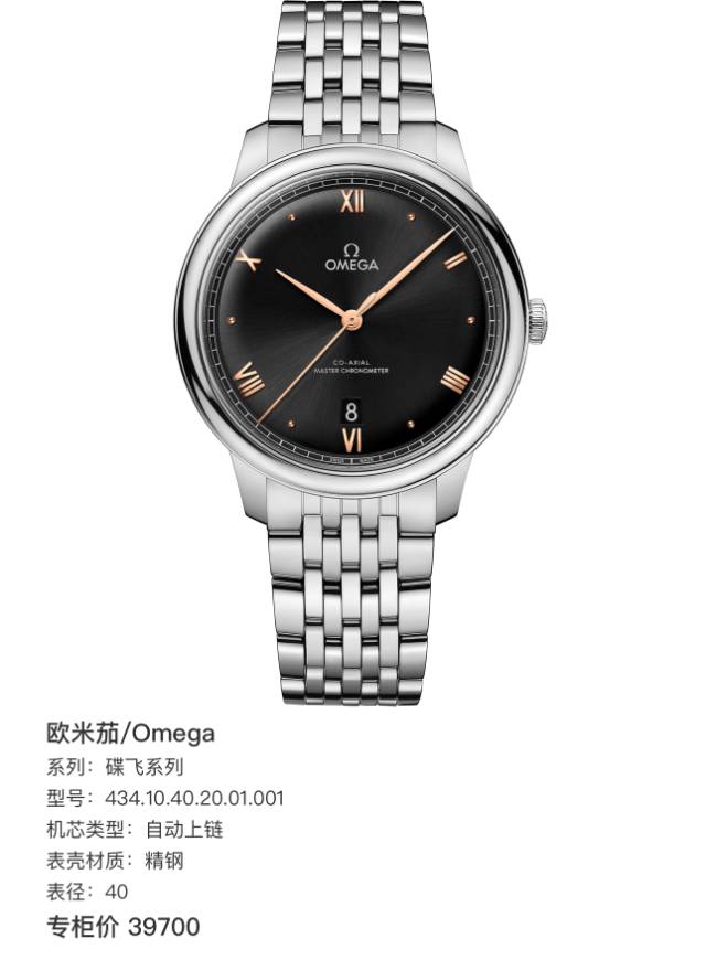 欧米茄/Omega 碟飞系列 434.10.40.20.01.001 自动上链 精钢 40 专柜价39700。