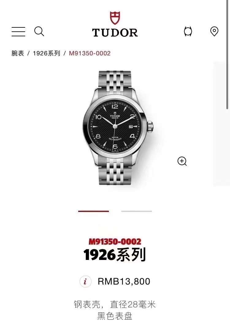帝舵1926系列!M91350-0002 ,28mm表径,黑色盘面银色针!全膜国行全新全套(官方联保5年!)自动机械女表、专柜价¥15400近期保卡