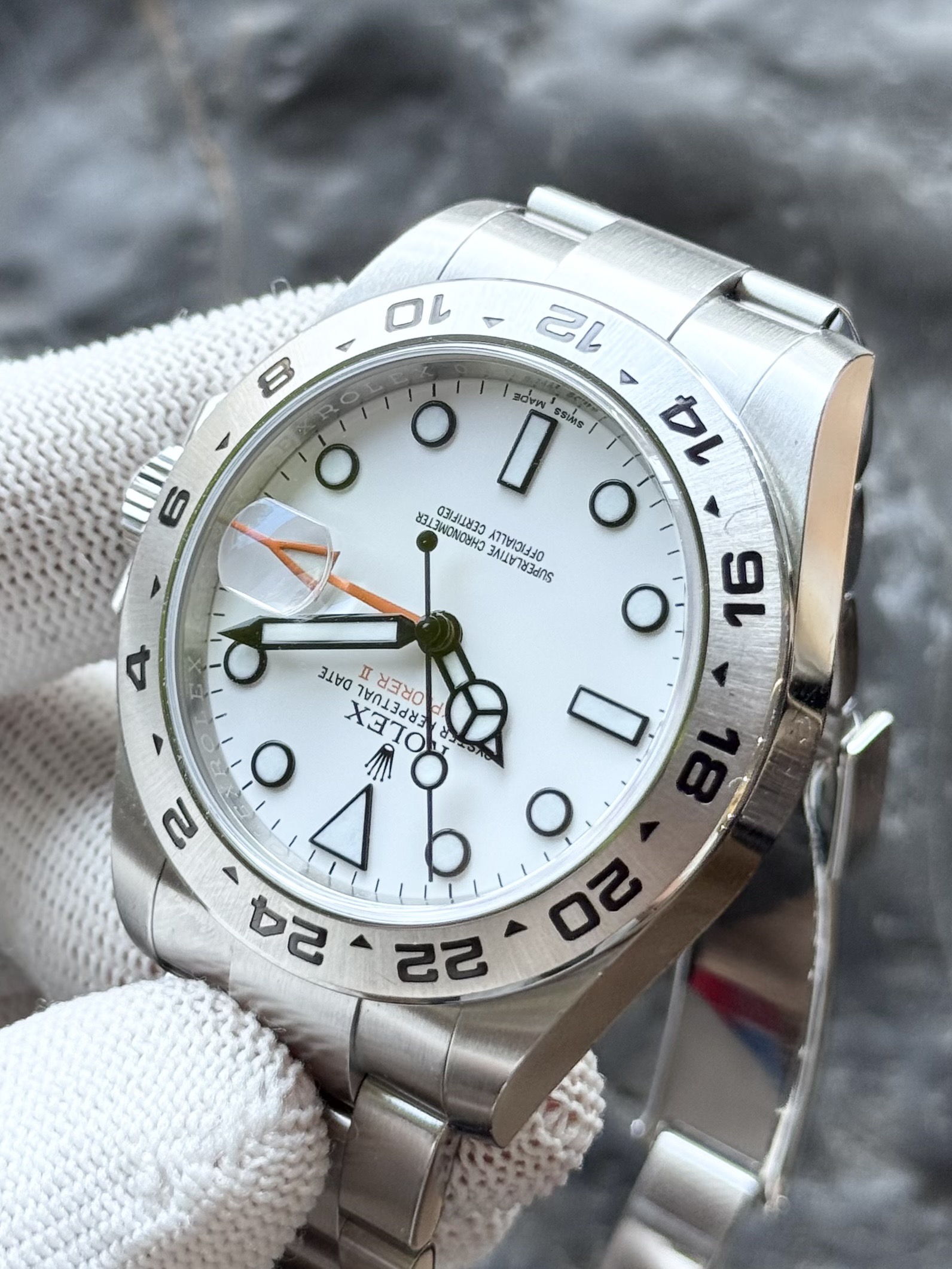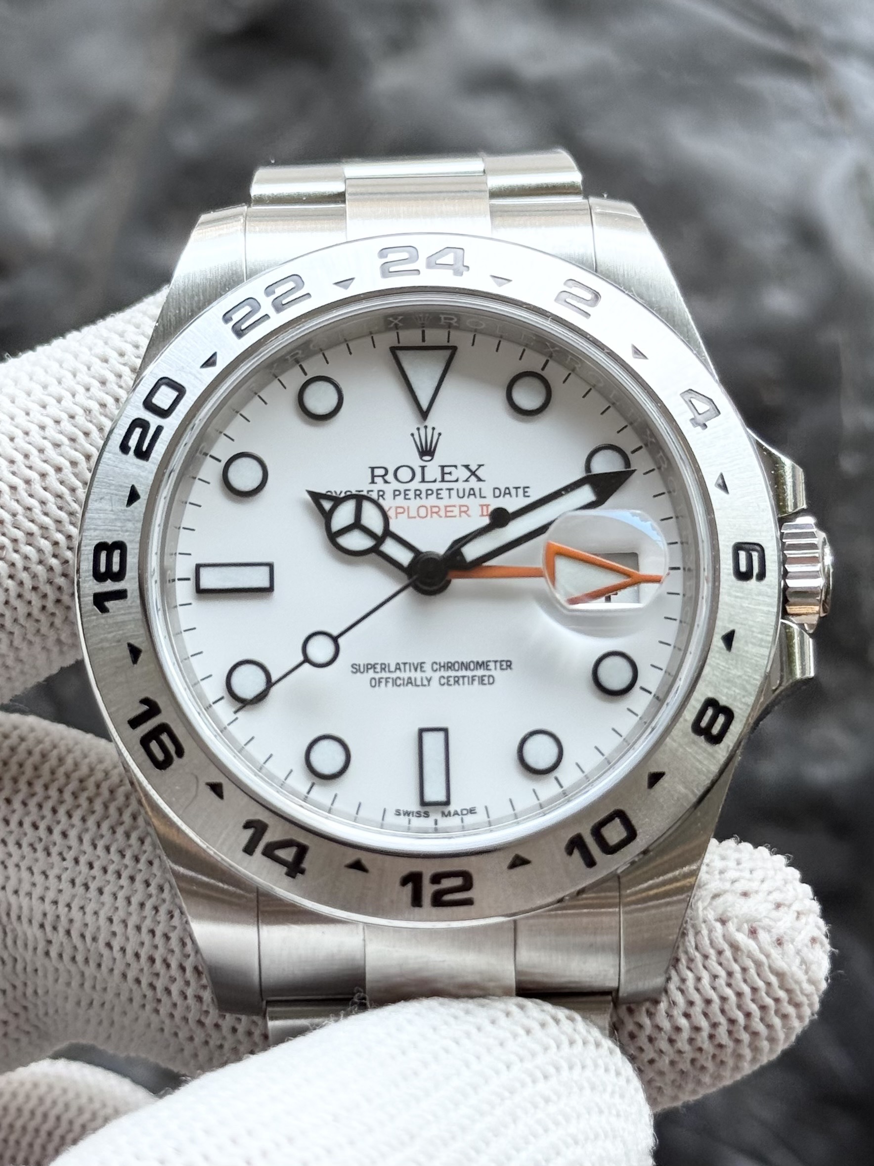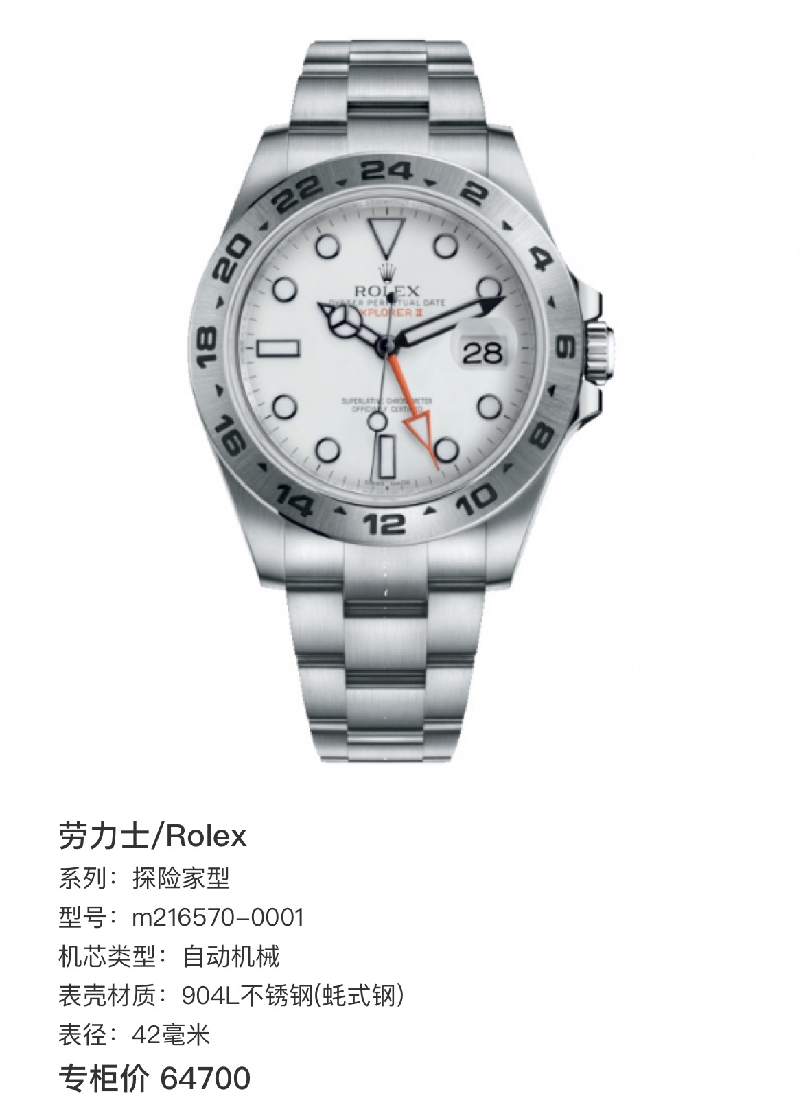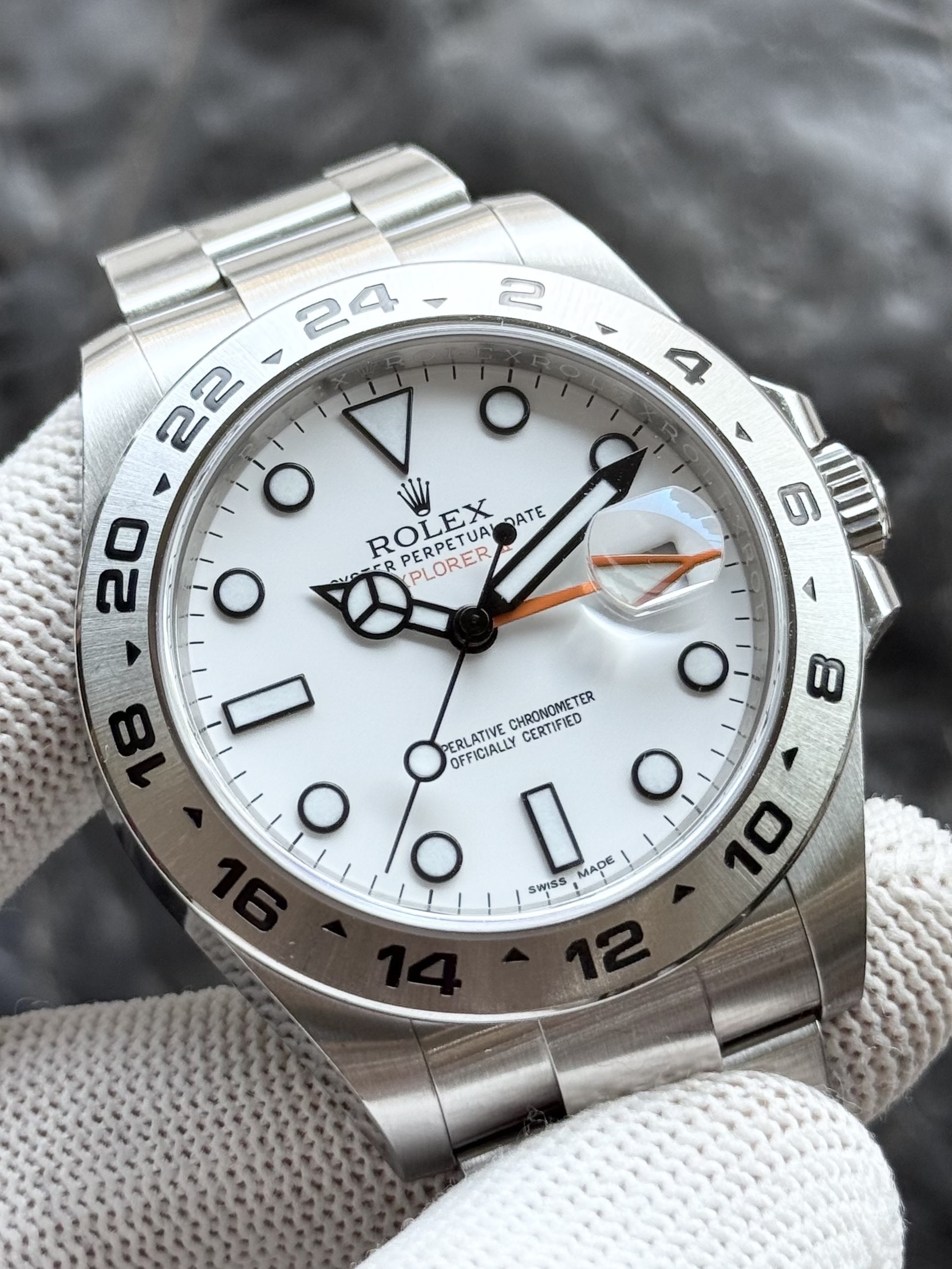 劳力士,探险家型,型号m216570-0001,白探二,小橙针GMT两地时,表径42mm,