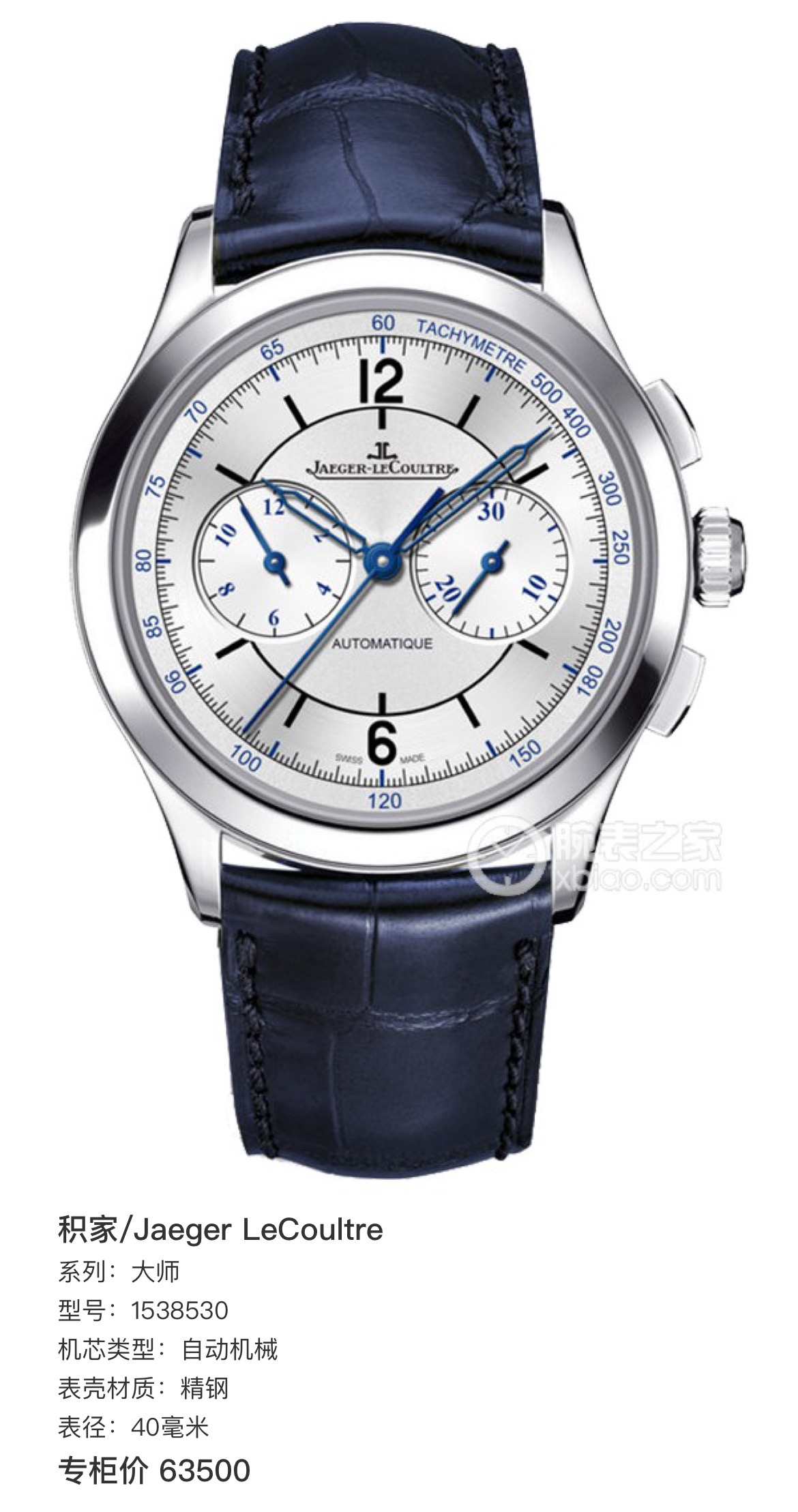 积家/Jaeger 大师系列1538530 自动机械男士腕表 精钢材质 表径40毫米 完美单表 专柜价63500元 现货好价