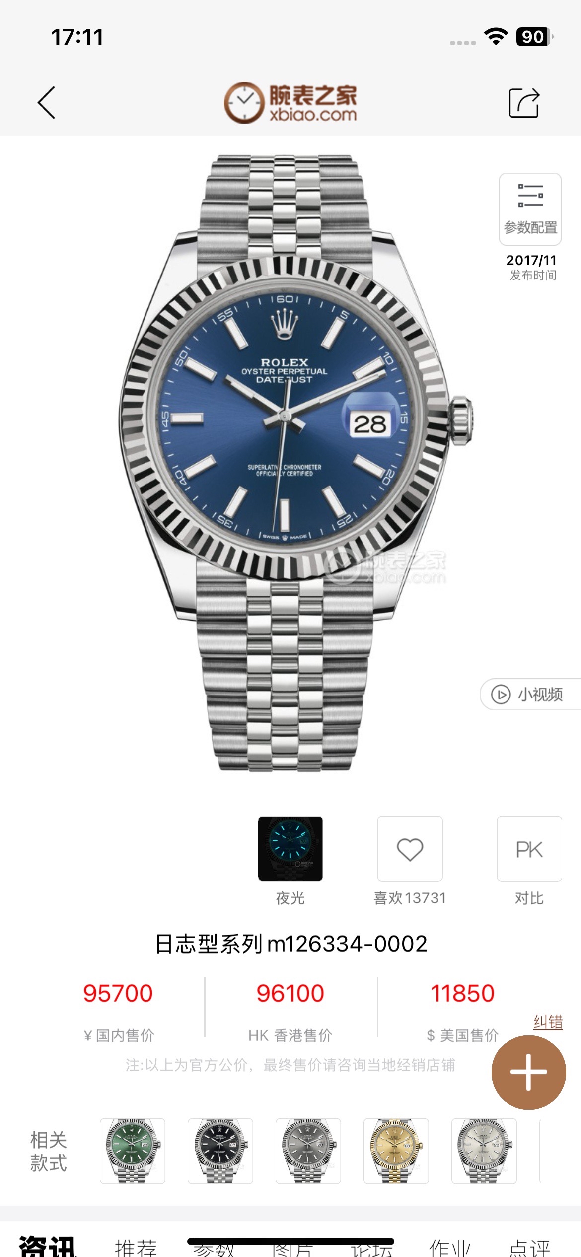 劳力士日志型 41蓝条日志 M126334-0002机械男性