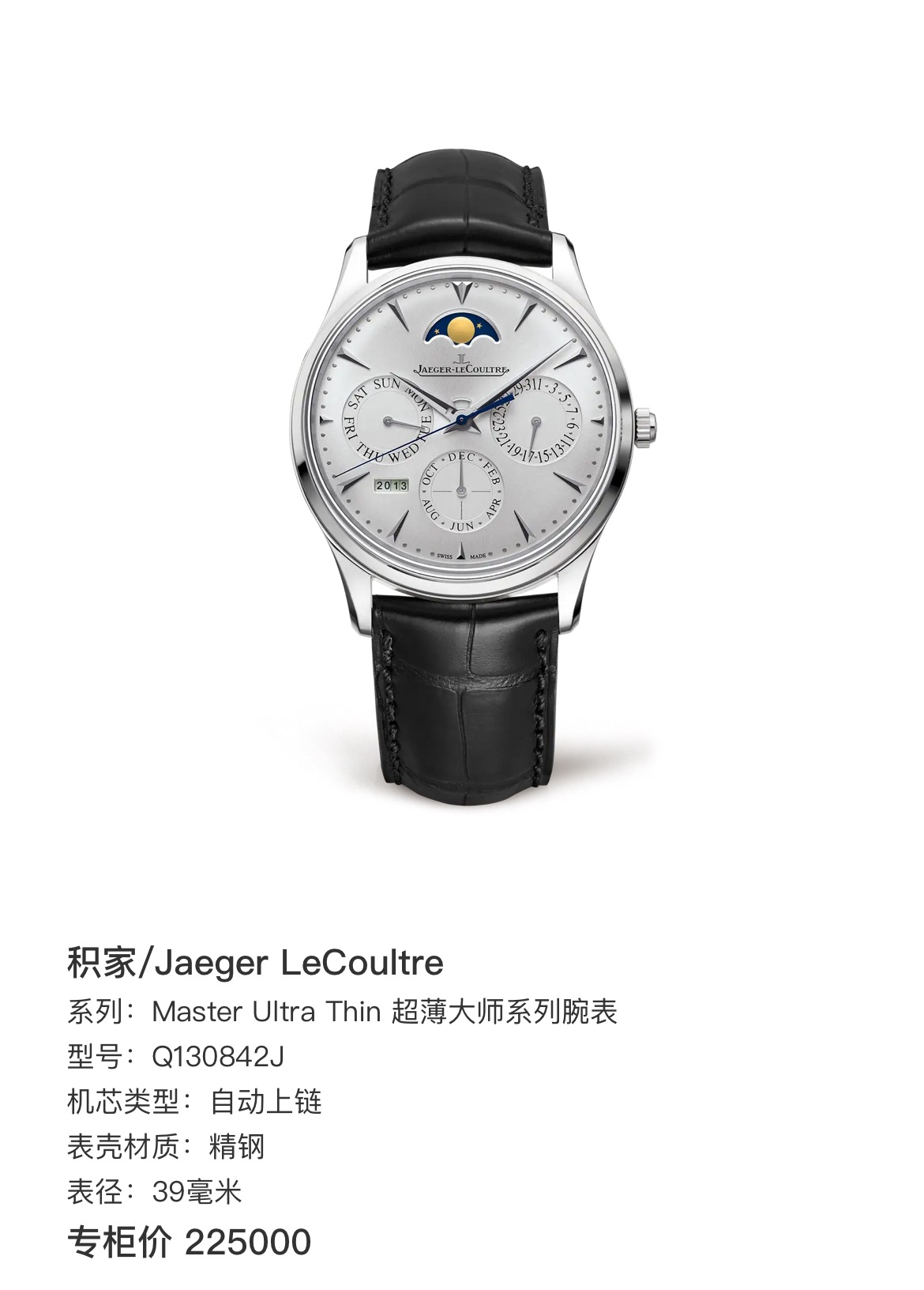 积家 超薄大师系列 Q130842J 自动上链 单表 精钢 39毫米 专柜价225000