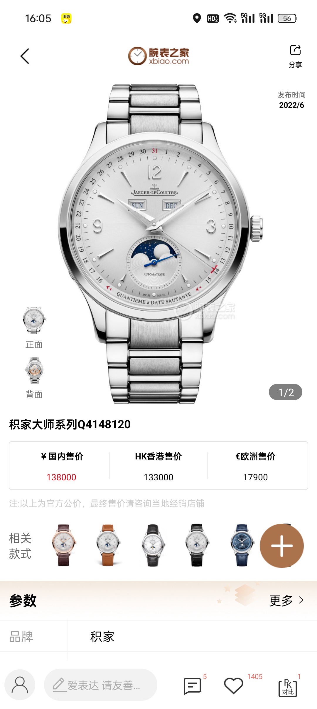 23年全套 积家大师 4148120 自动机械 精钢 40毫米表径钢带专柜价125000