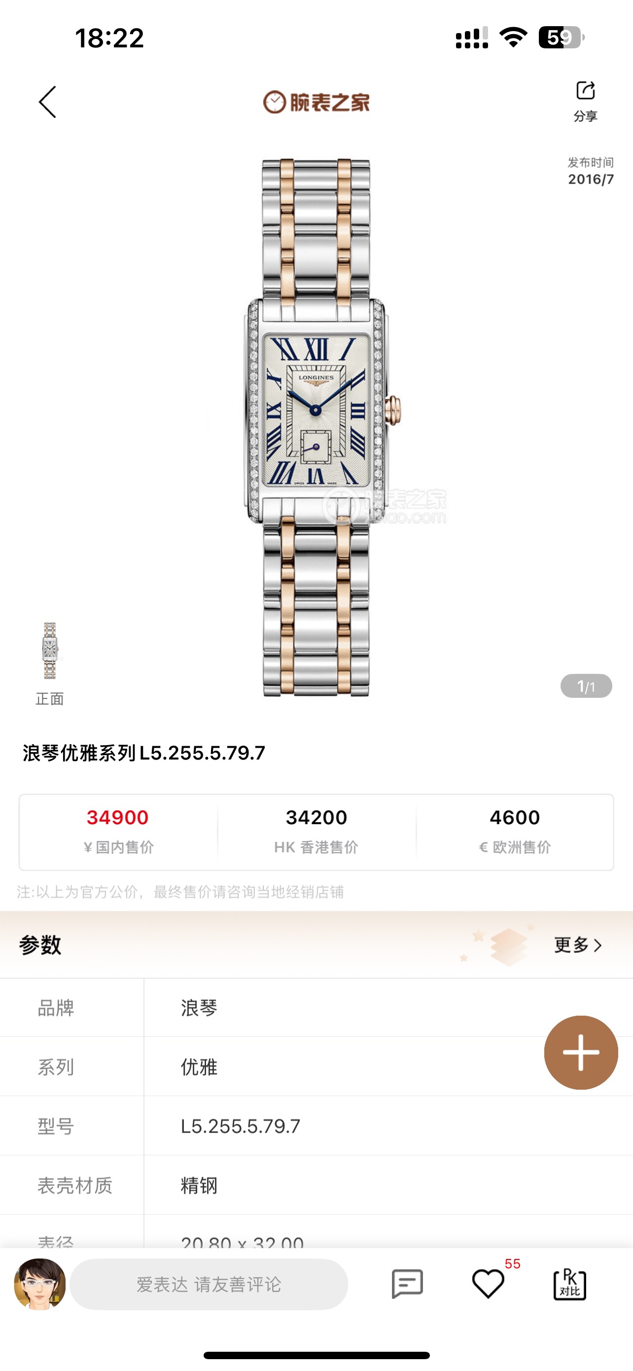 浪琴黛绰维纳L5.255.5.79.7石英女性