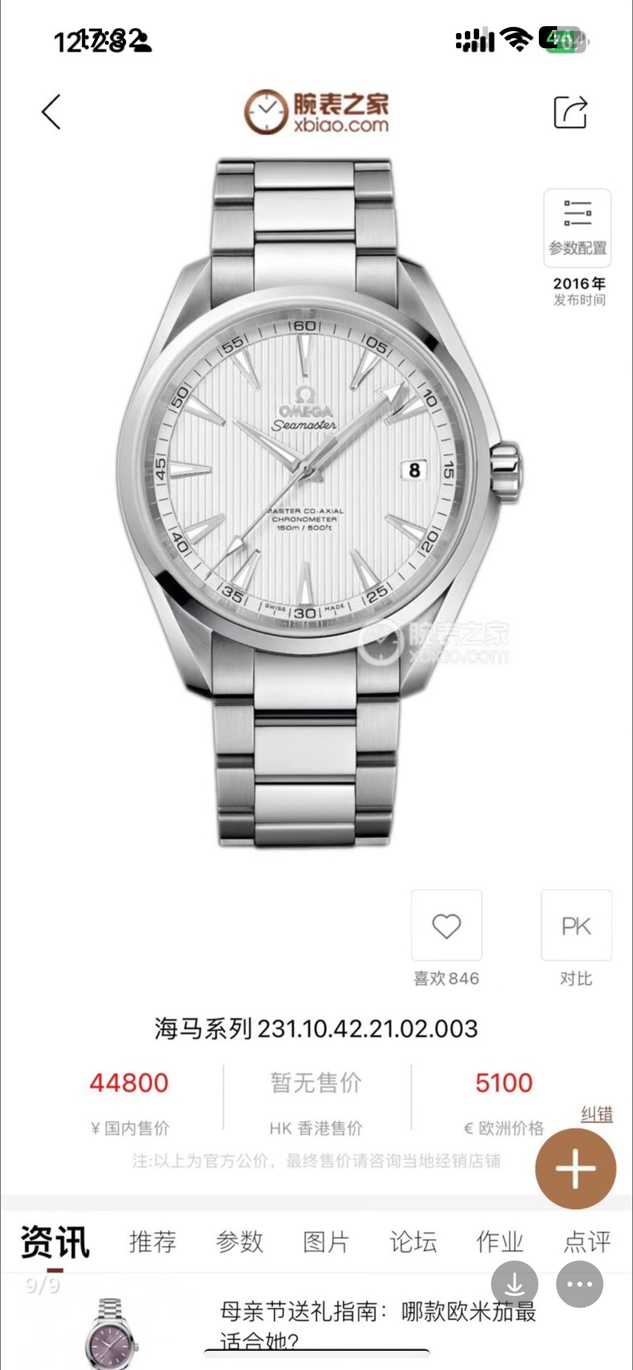 欧米茄/Omega 海马 231.10.42.21.02.003