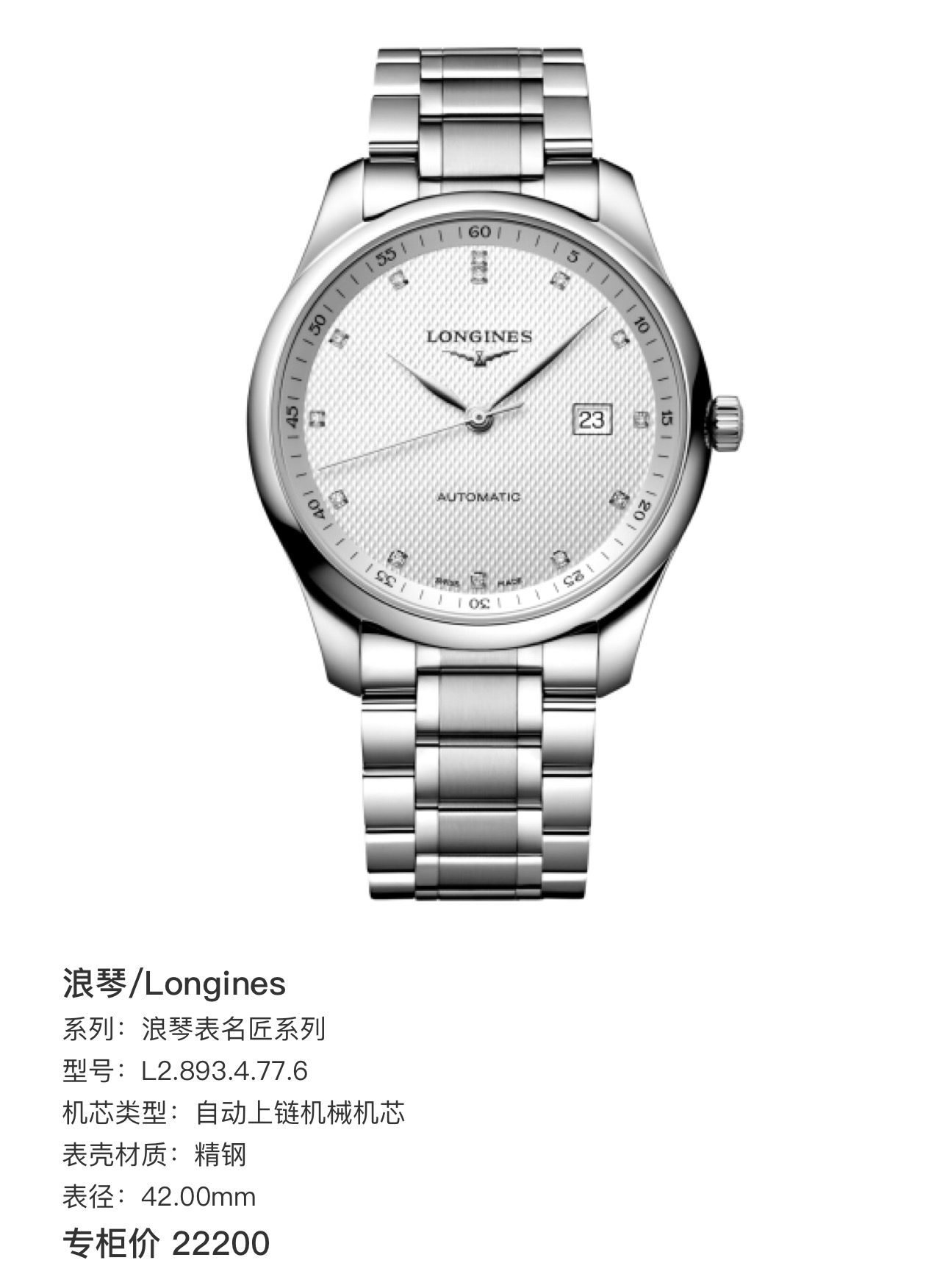 浪琴/Longines 浪琴表名匠系列 L2.893.4.77.6