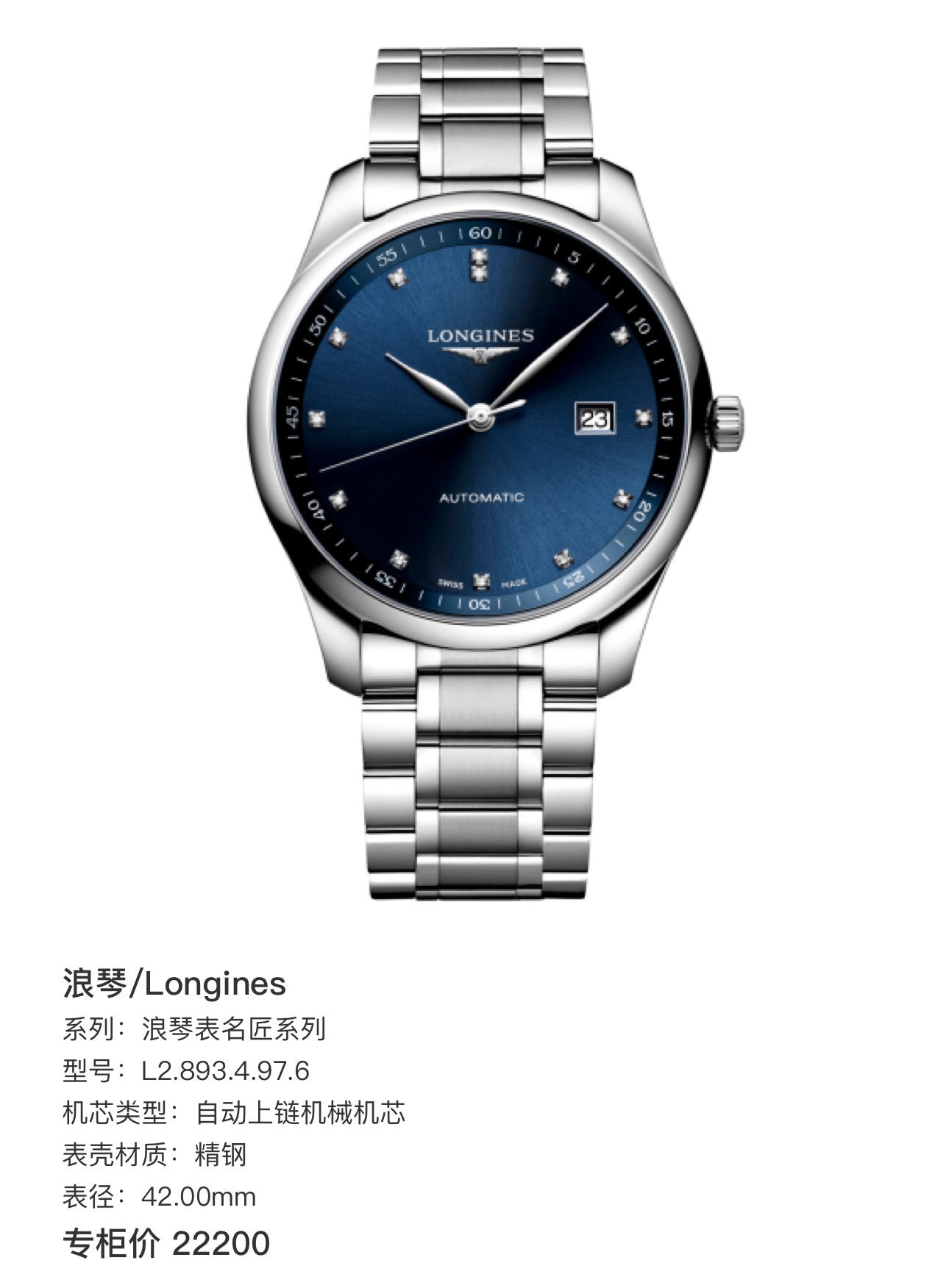 浪琴/Longines 浪琴表名匠系列 L2.893.4.97.6