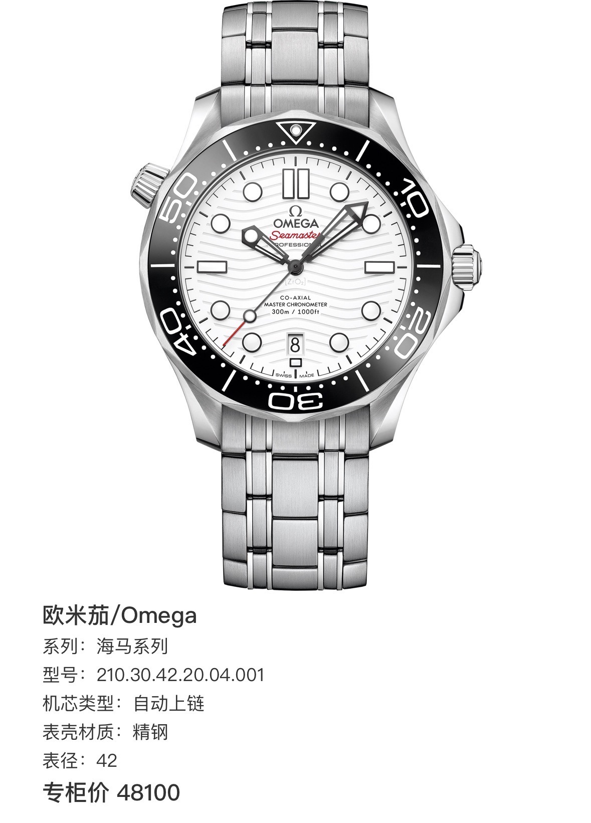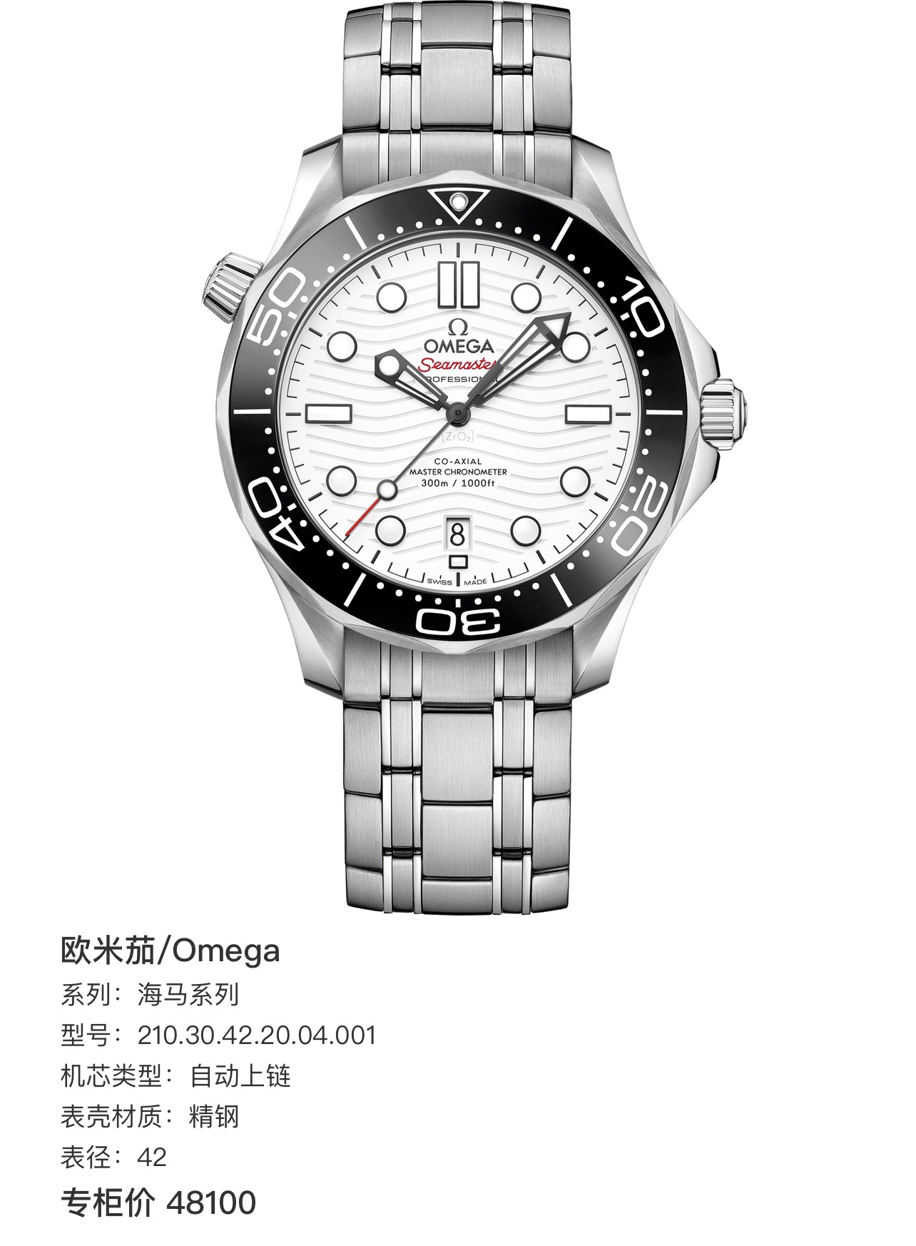 欧米茄/Omega 海马系列 210.30.42.20.04.001 自动上链 精钢 42 专柜价48100