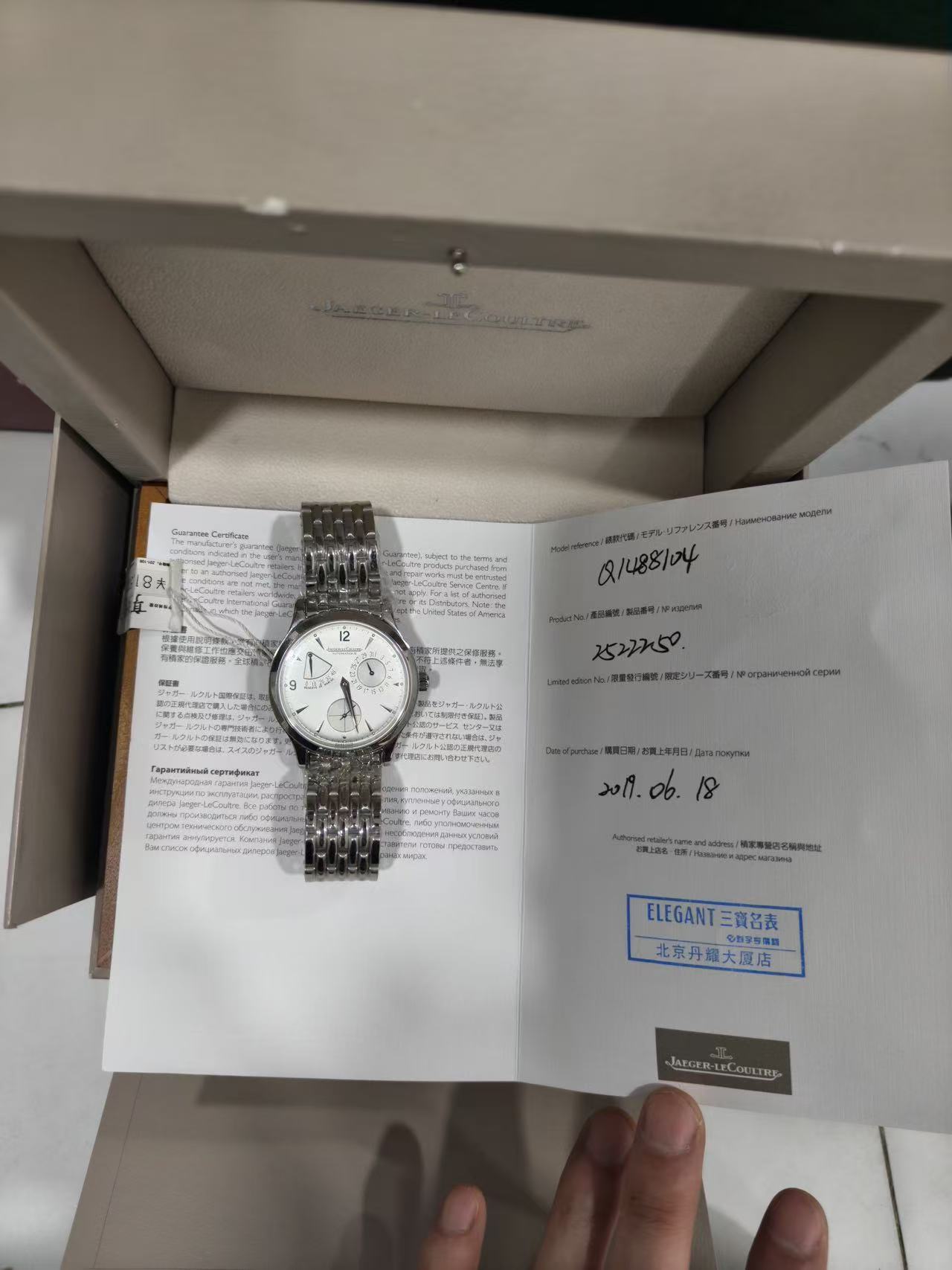 2019年全套库存未使用积家/Jaeger LeCoultre 大师 Q1488104 自动机械 精钢 39毫米 专柜价86500
