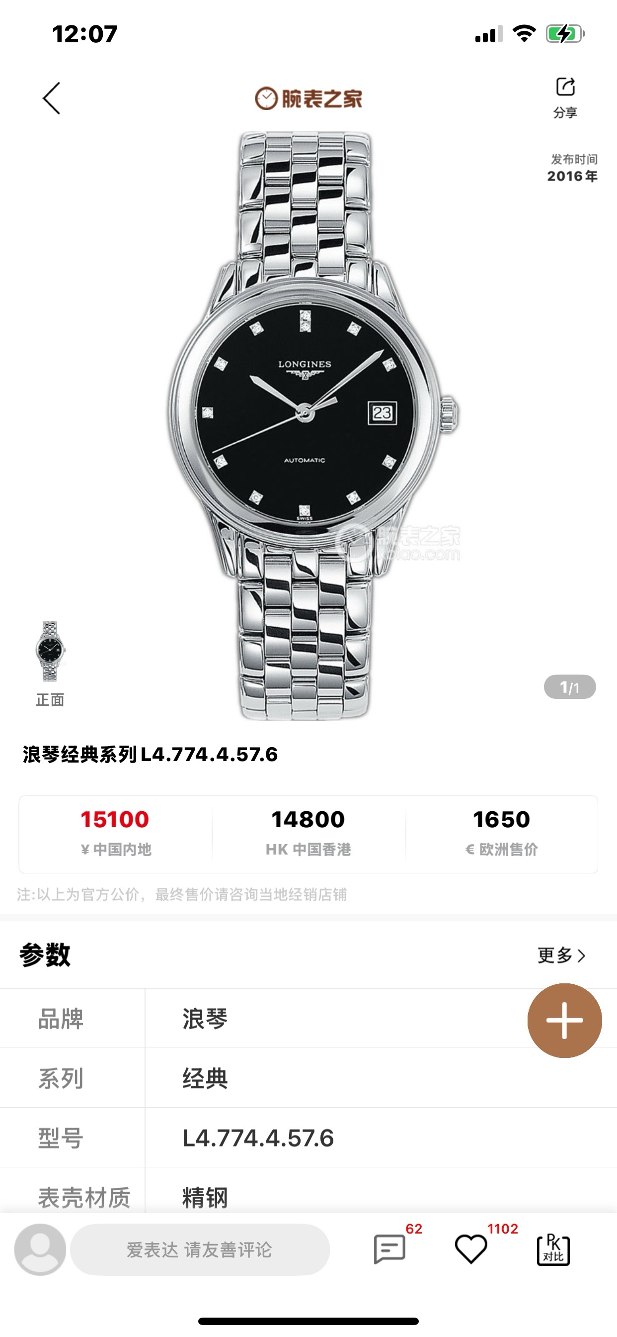 腕周188。公价15100。编码1B01122LZ